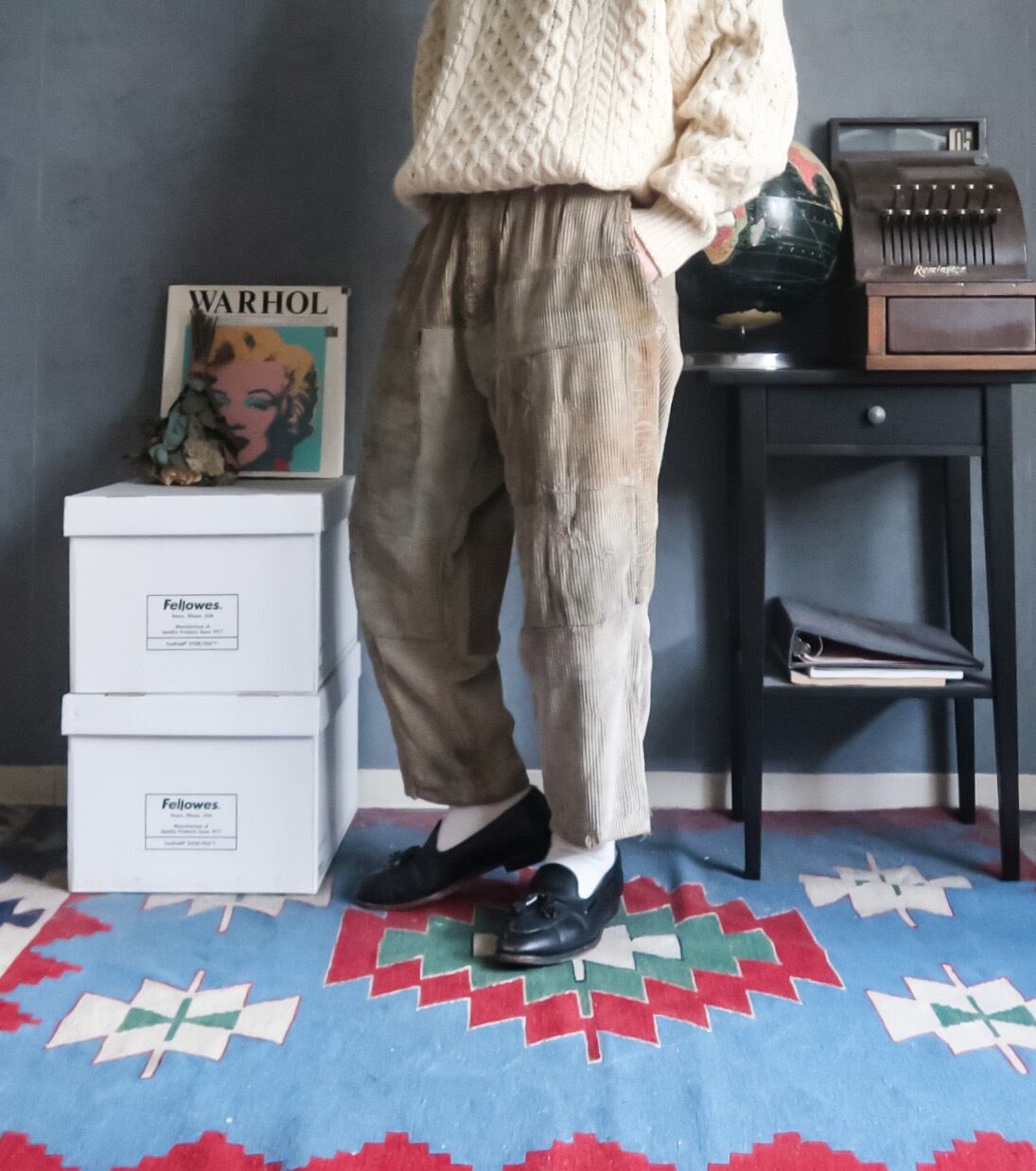 ベージュ系のカラーリングに太畝のコーデュロイ。