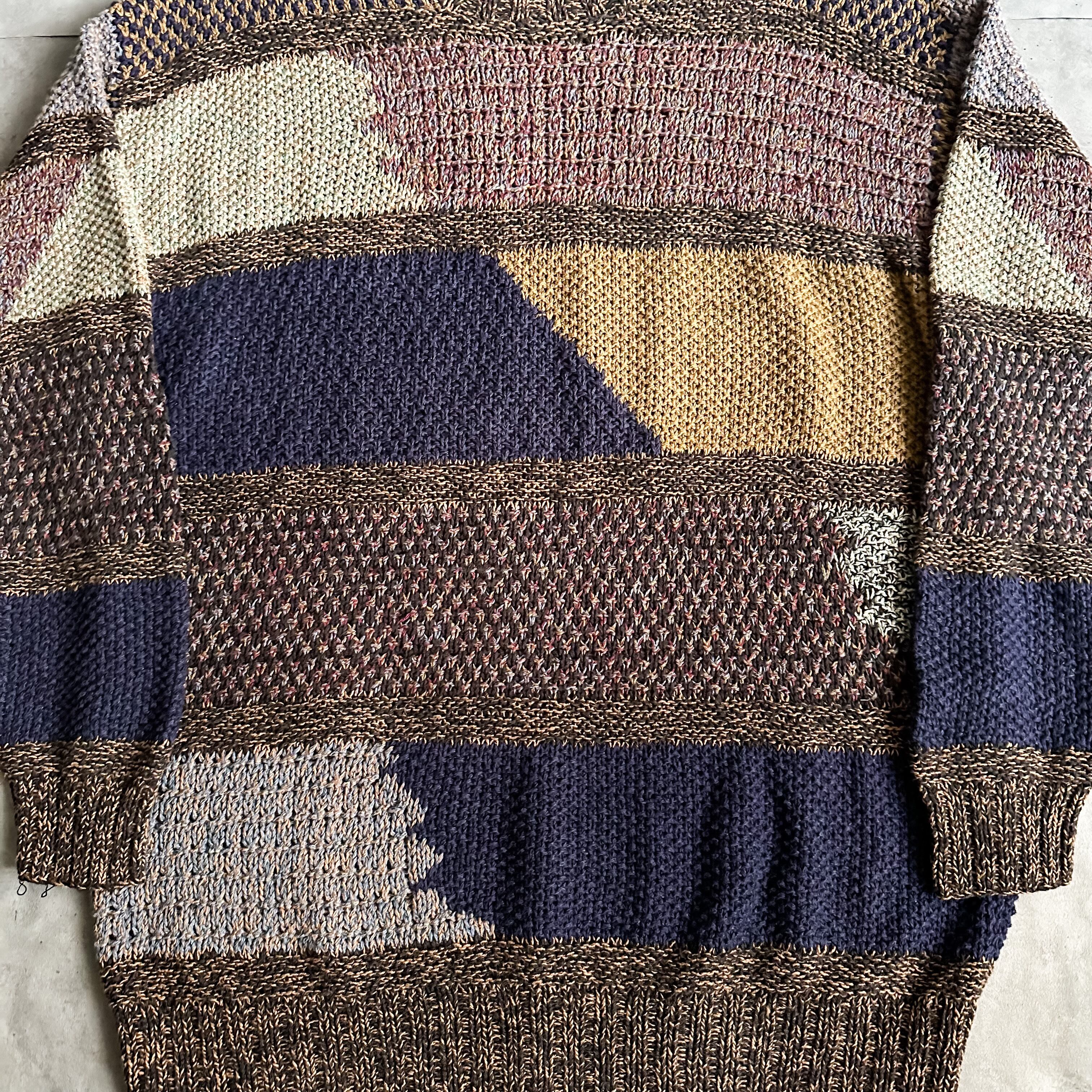1990's switching design linen×cotton hand knit sweater
