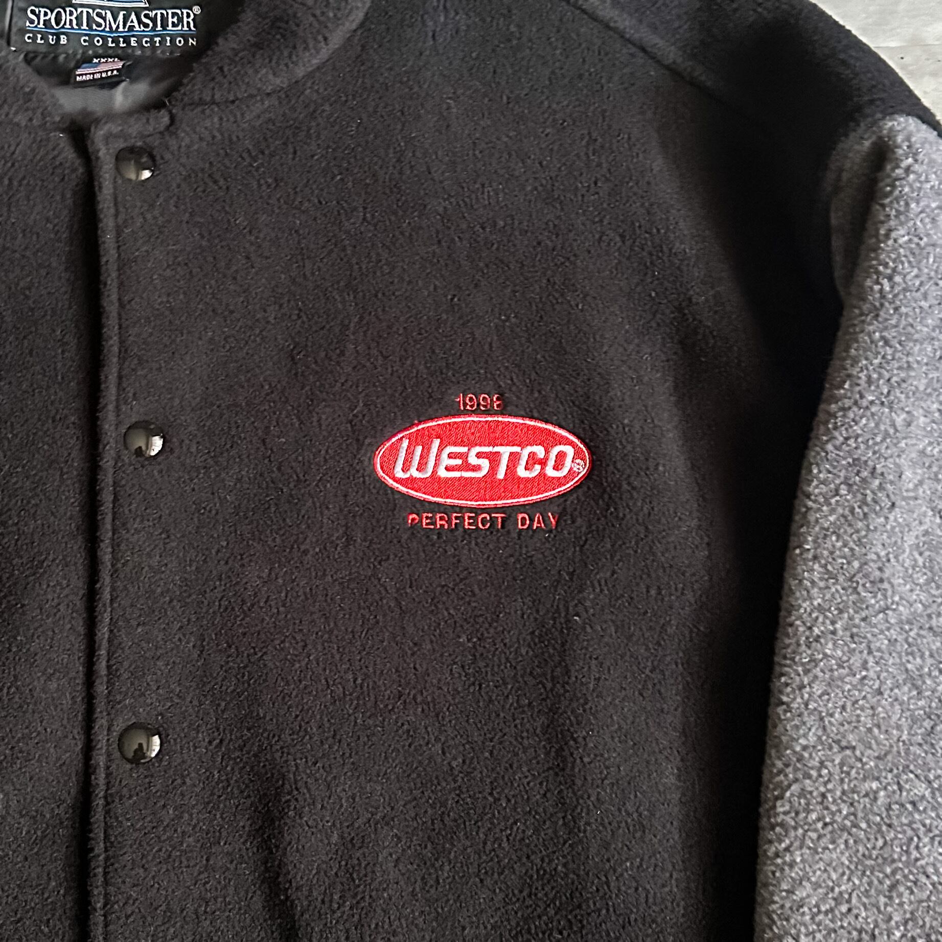 1990's switching design fleece stadium jacket made in USA