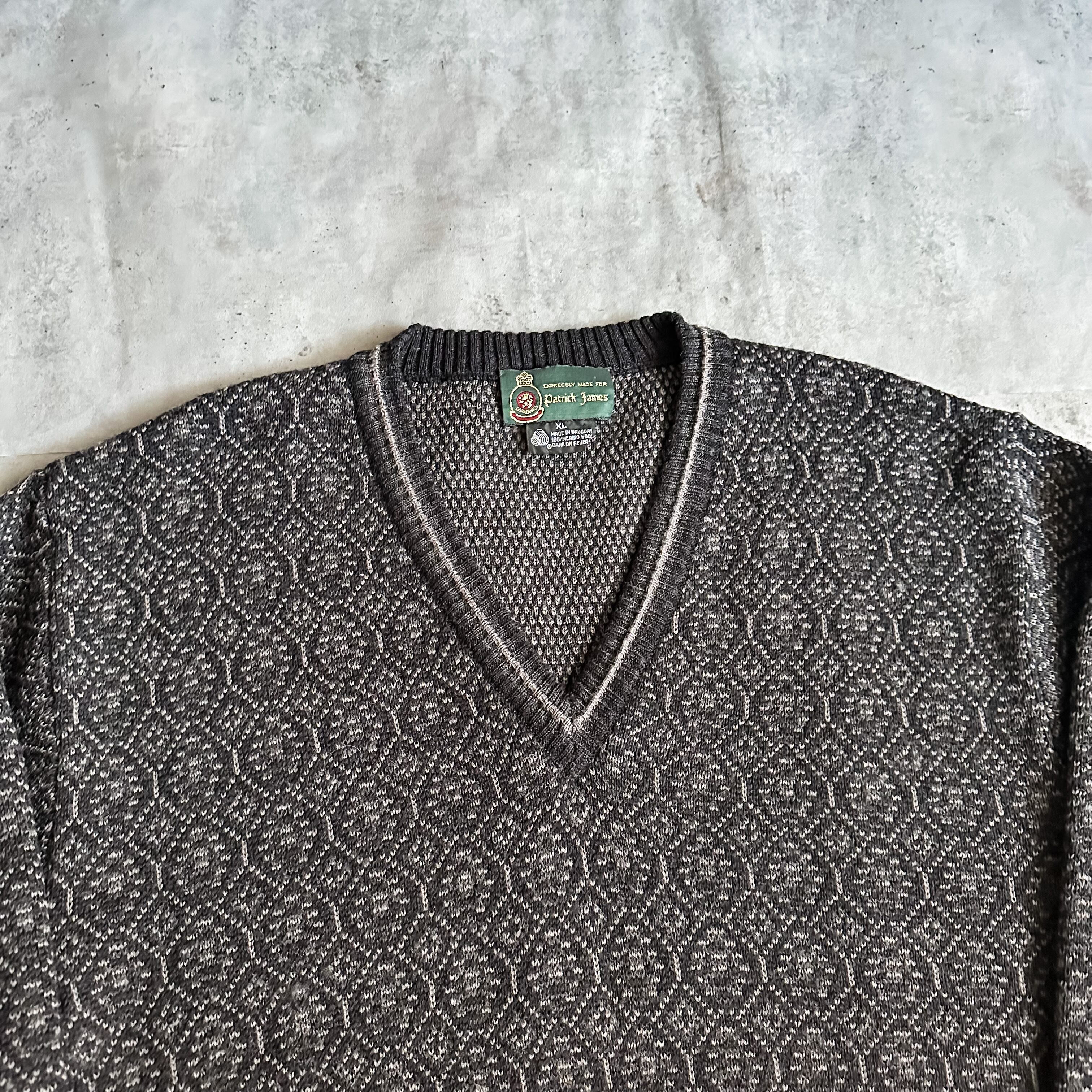 1990's patterned allover Vneck merino wool sweater made in Uruguay