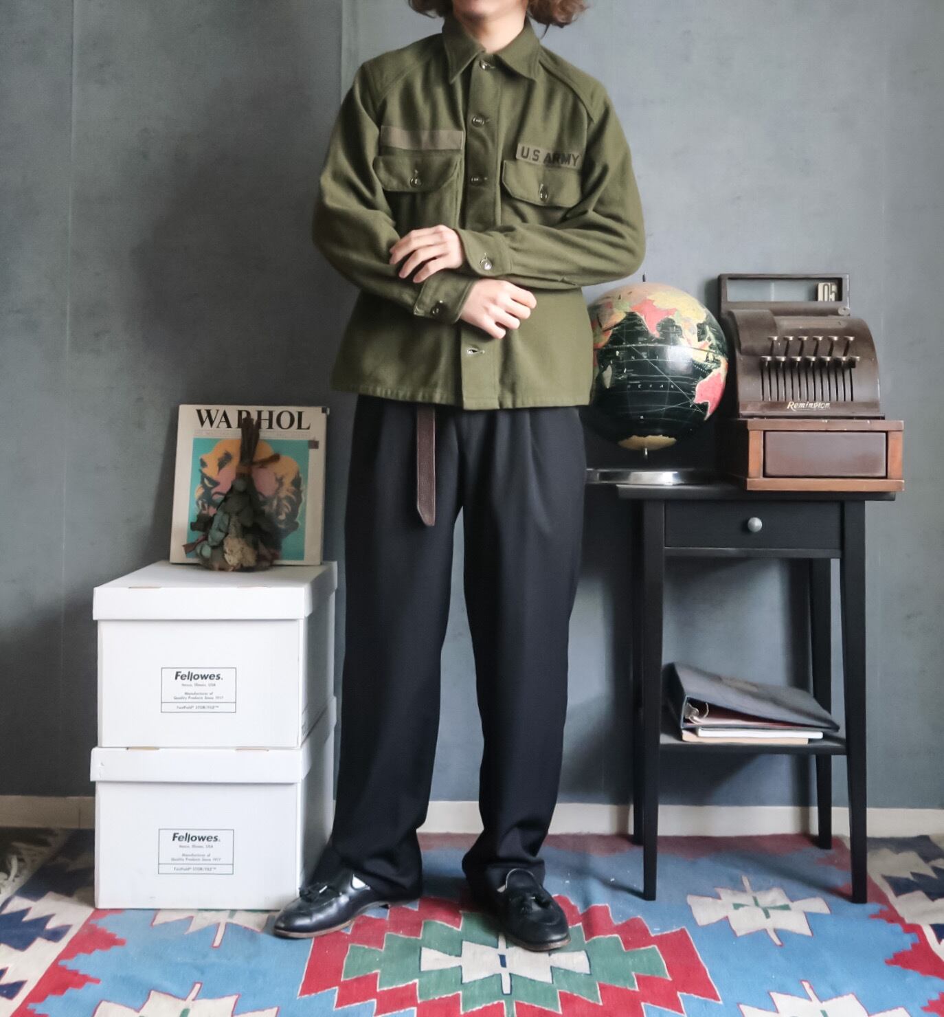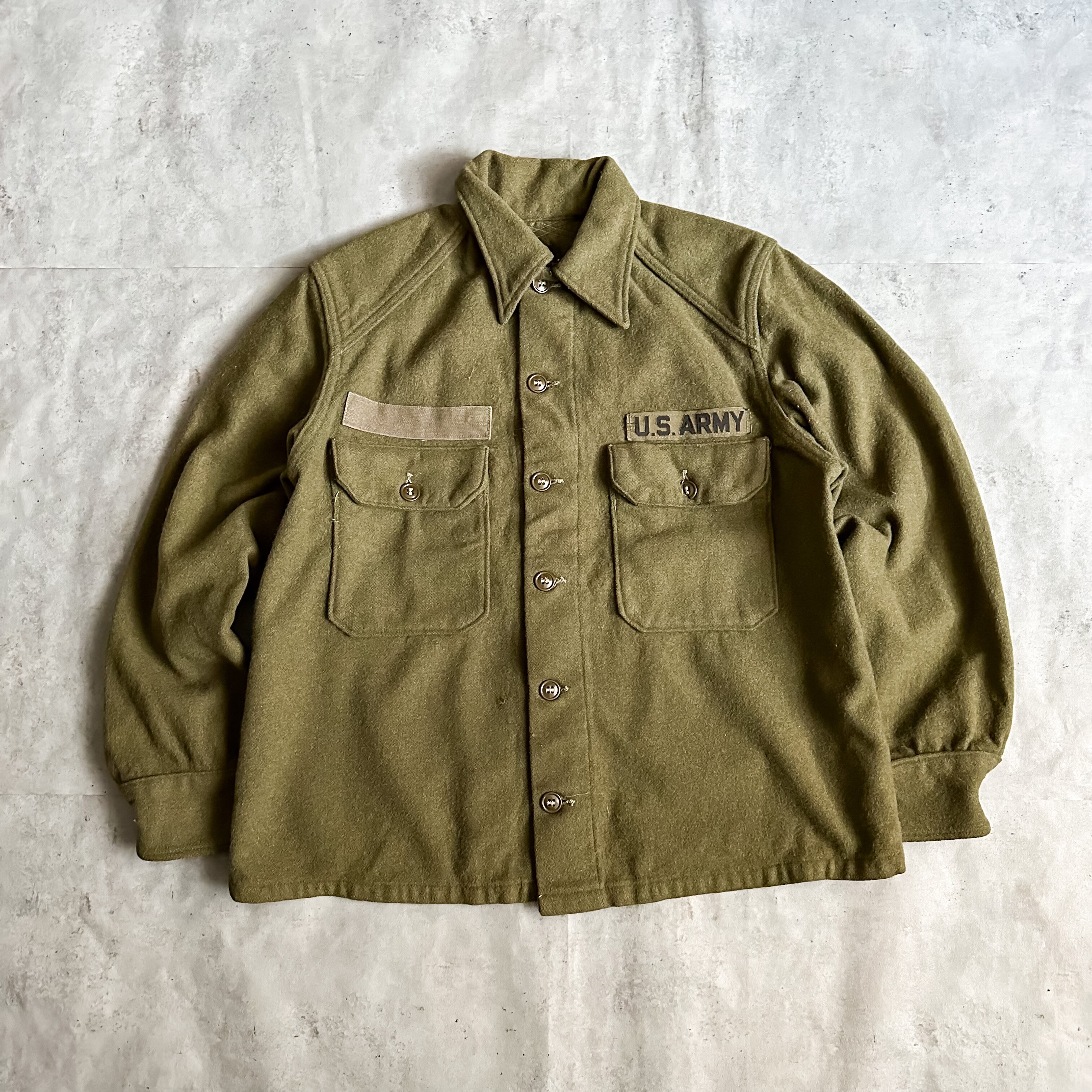 特徴 :ミリタリーらしいオリーブカラーでしっかりとした質感のウールが使用された1950年代頃のUS ARMYのヴィンテージウールシャツジャケット。