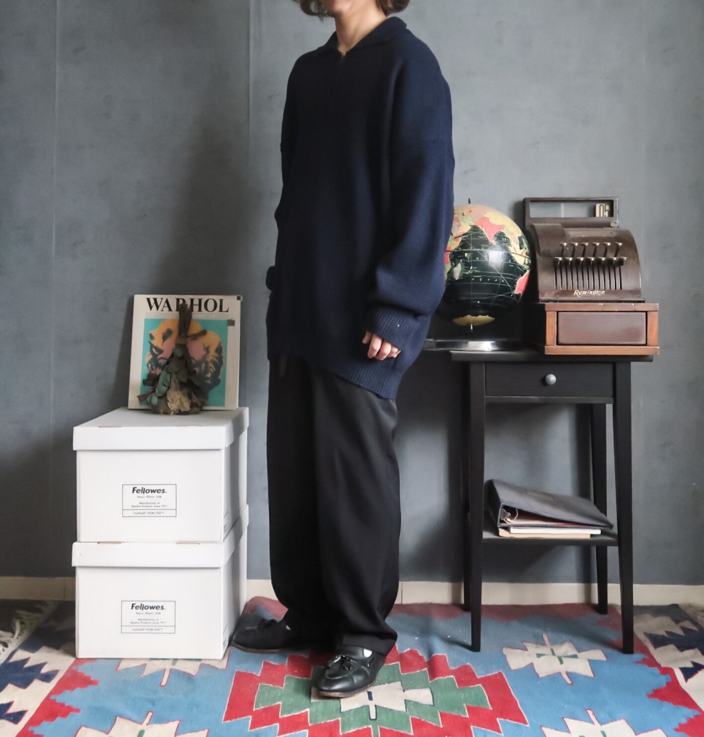 1990's navy bigsize halfzip collar wool sweater made in New Zealand
