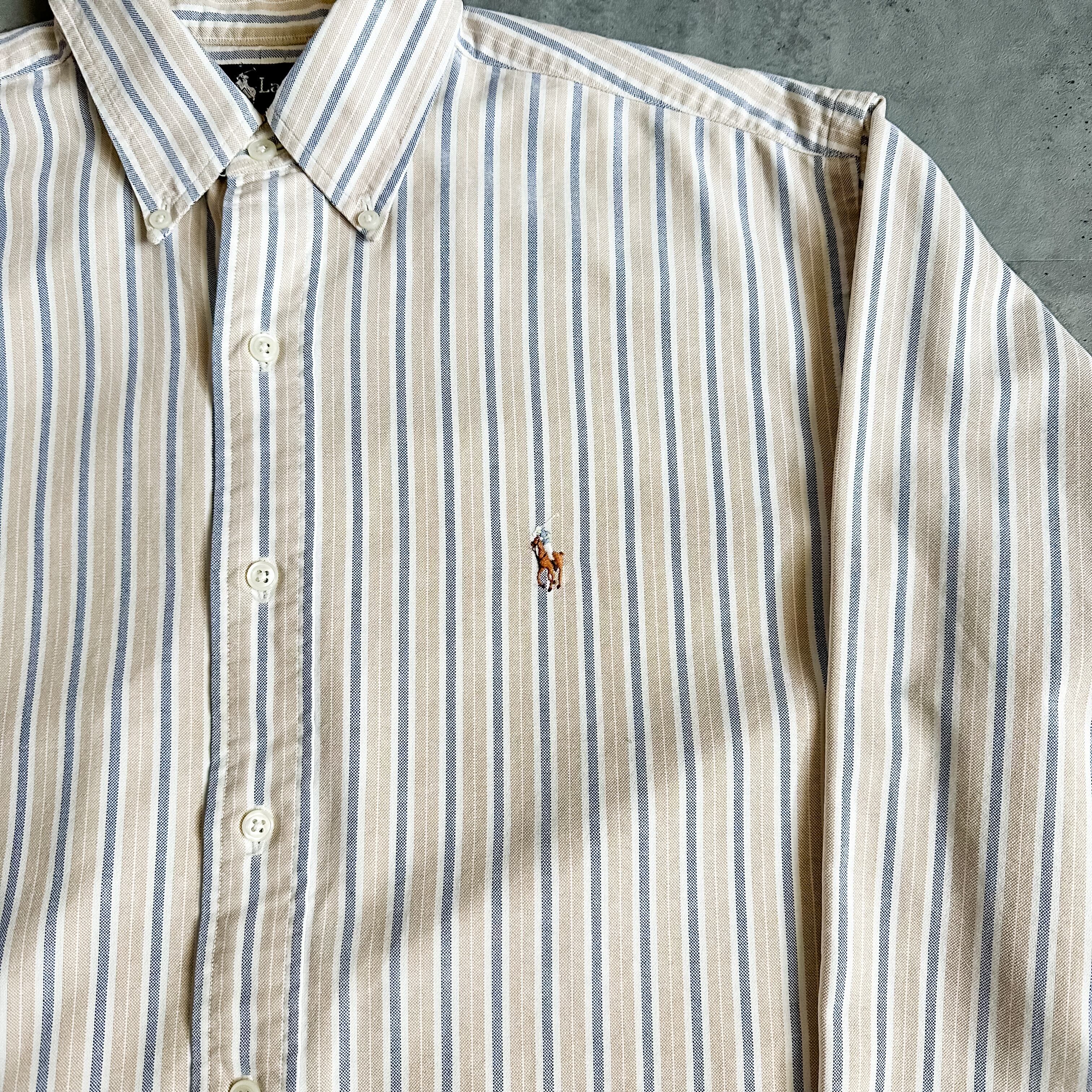 1990's Ralph Lauren "YARMOUTH" B/D mulch color stripe pattern cotton shirt