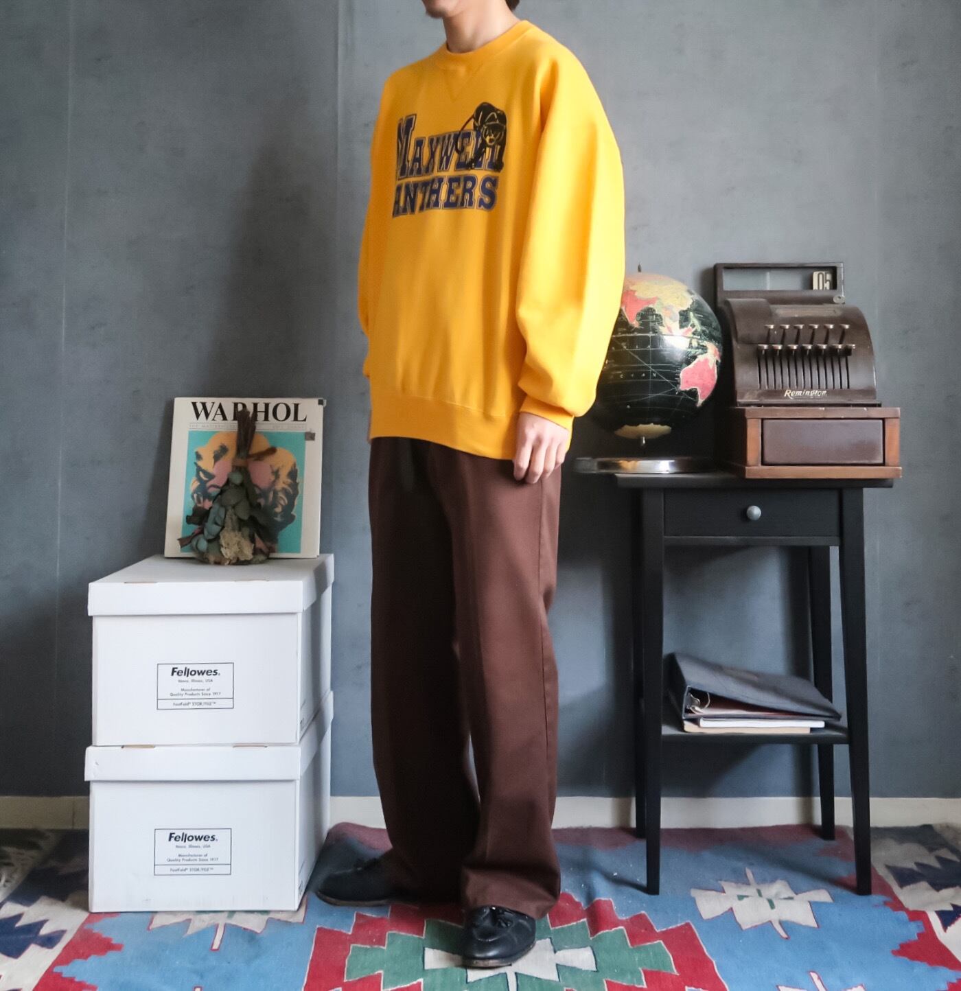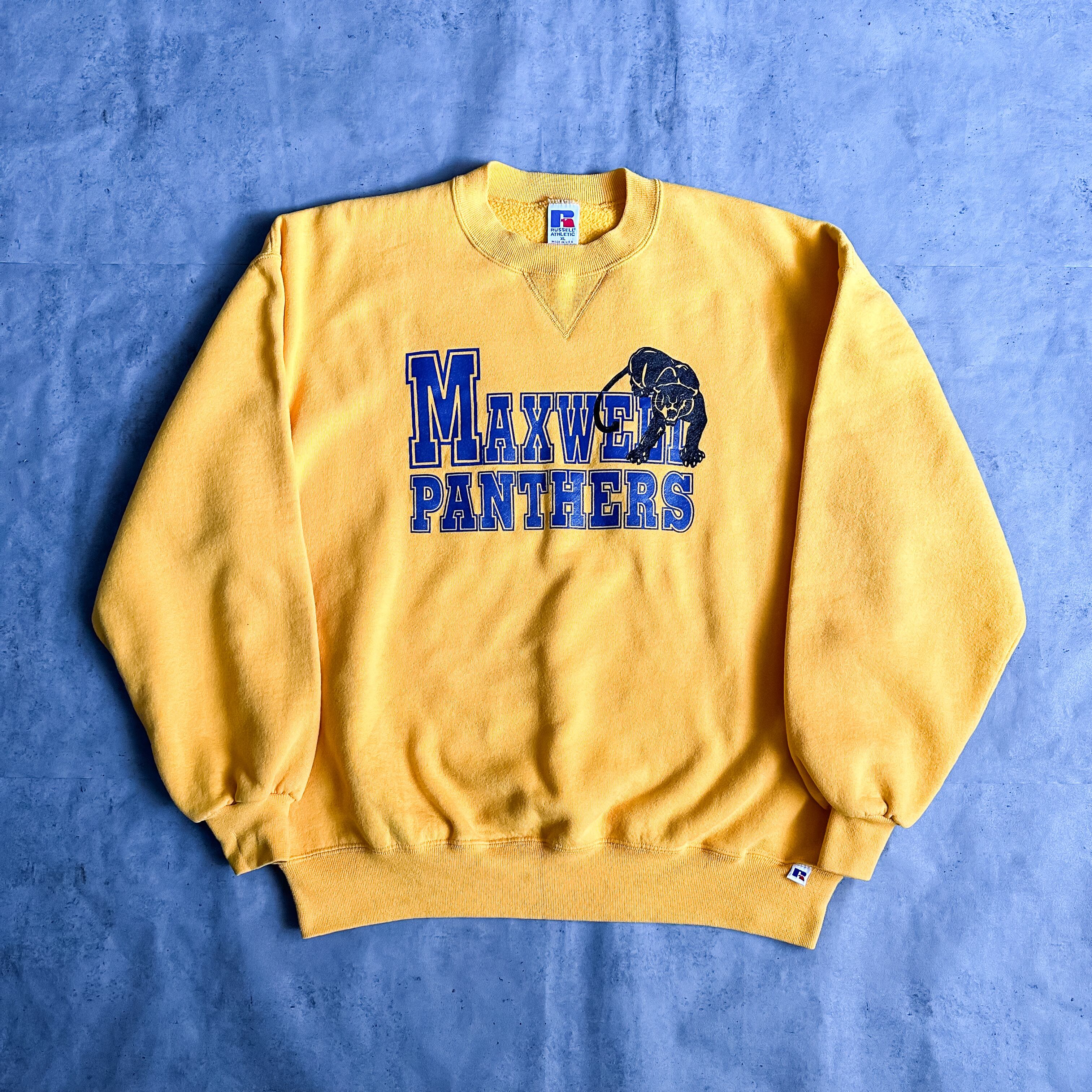 春らしいイエローカラーに前Vで、フロントには"MAXWELL PANTHERS"のプリントが入るラッセルの中でもクオリティの高い一着です。