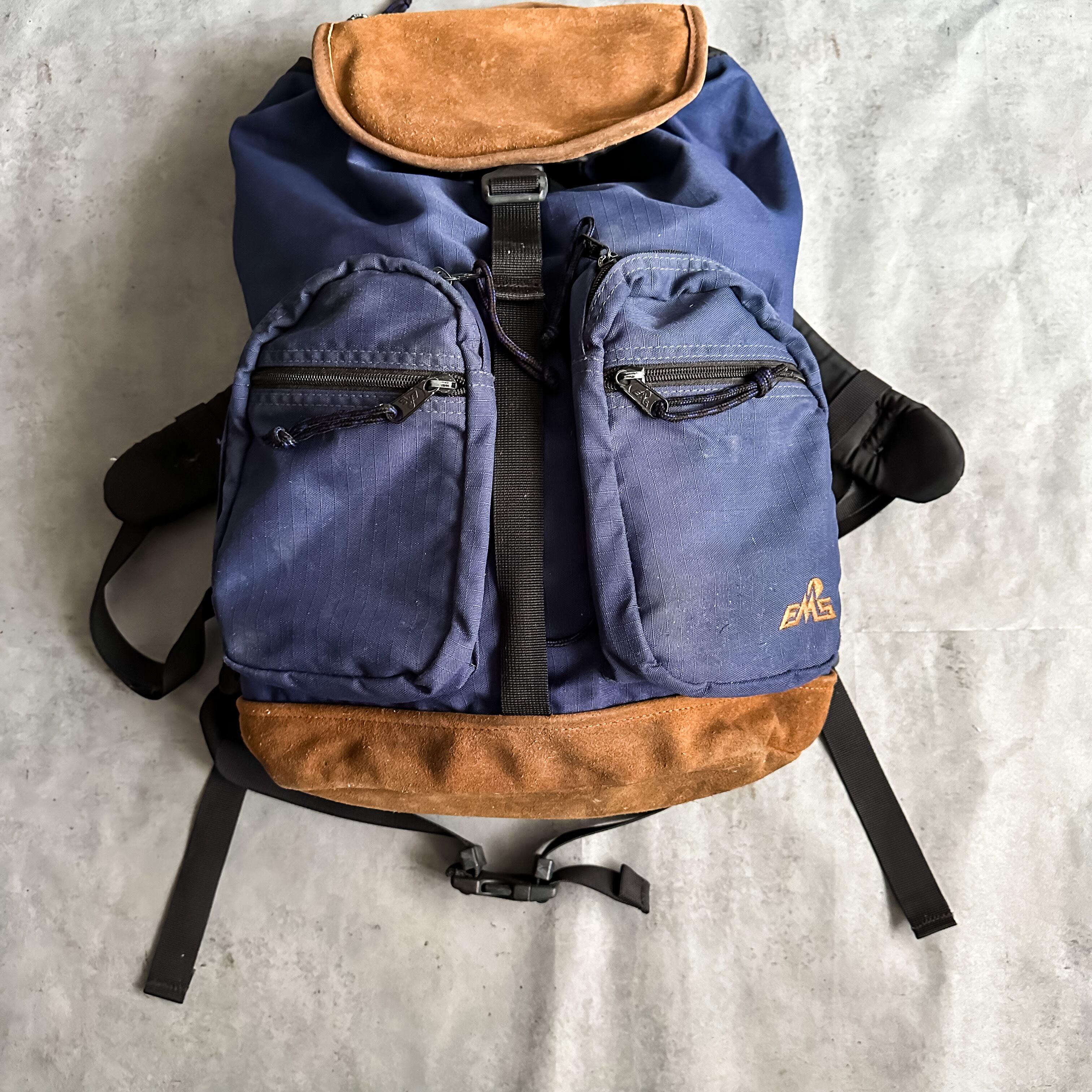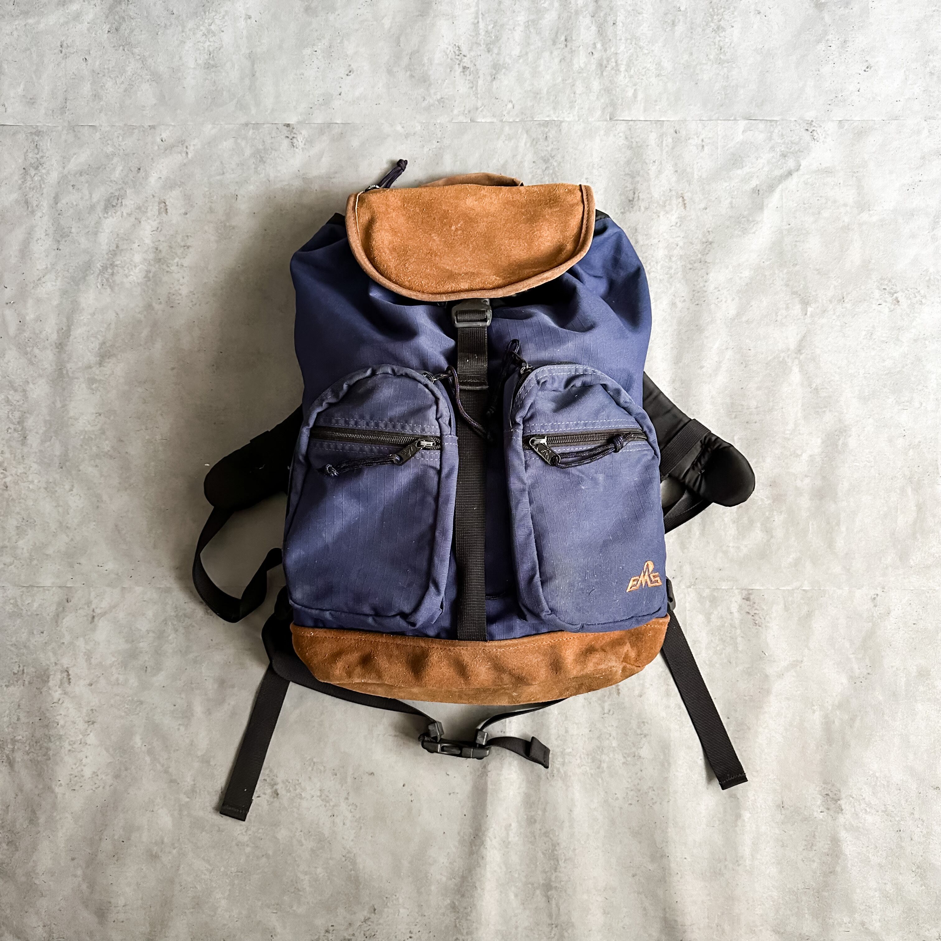 1990's~ "EMS" suede leather switching design ripstop back pack
