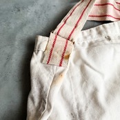 配達用という元々の用途の為バッグの蓋がないラフな作りですが、こちらはDカンとベルトで上部の中央が絞れるようになった珍しいディテール。