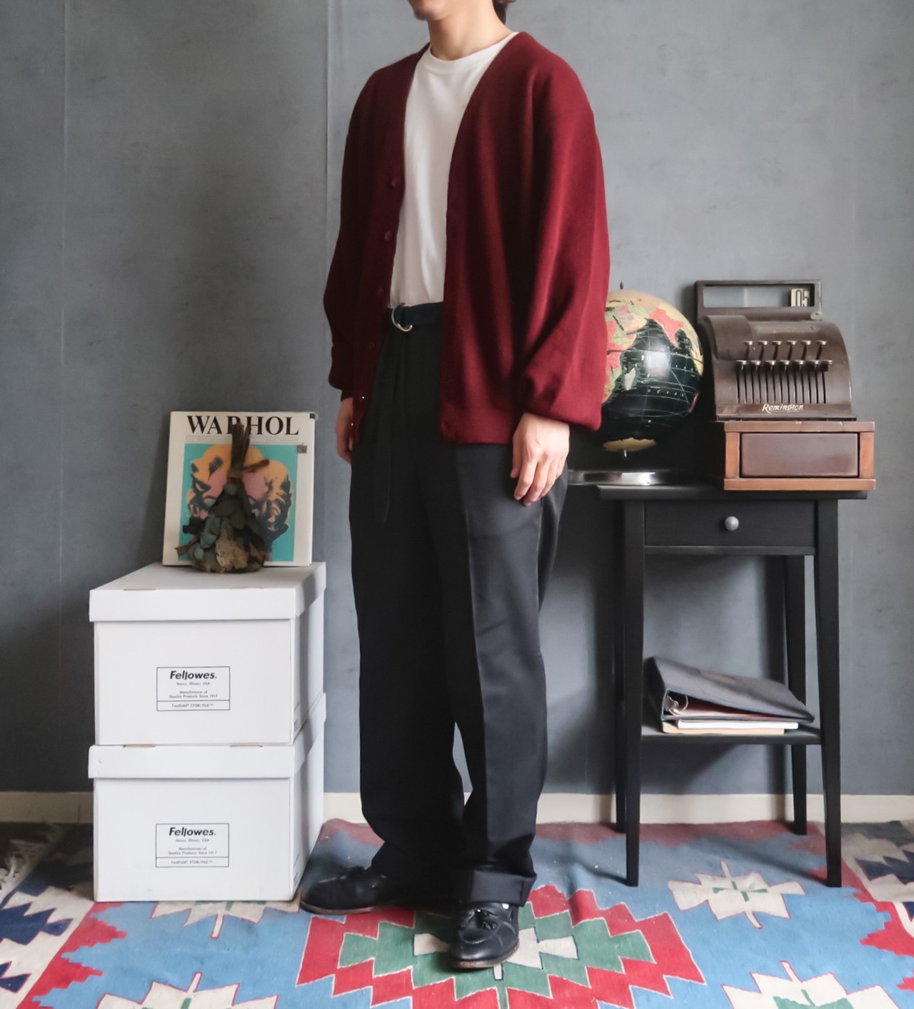 普段使いしやすく長いシーズン着用できるアクリル素材に、深みのあるグッドなマルーンカラー。