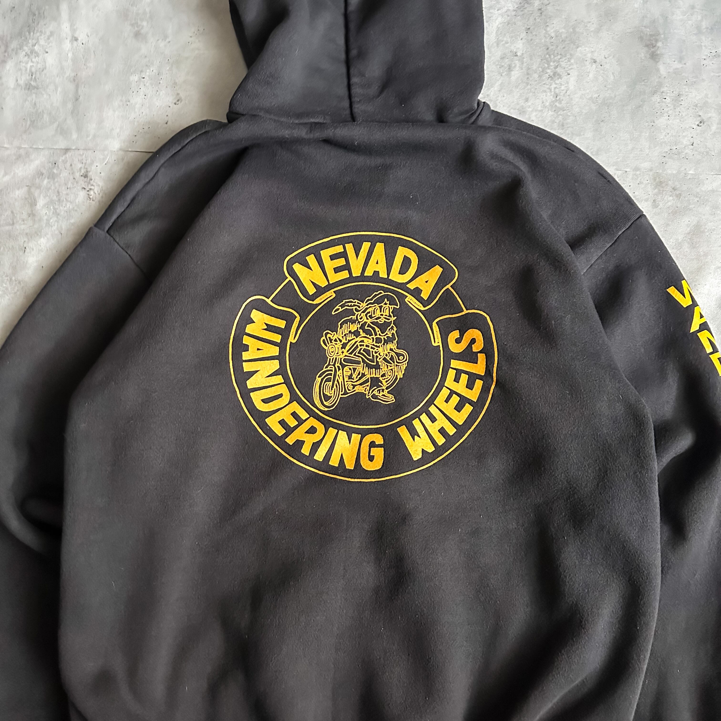墨黒系のブラックボディーに、フルジップパーカーでは珍しい袖プリとバックプリントが入る良個体。