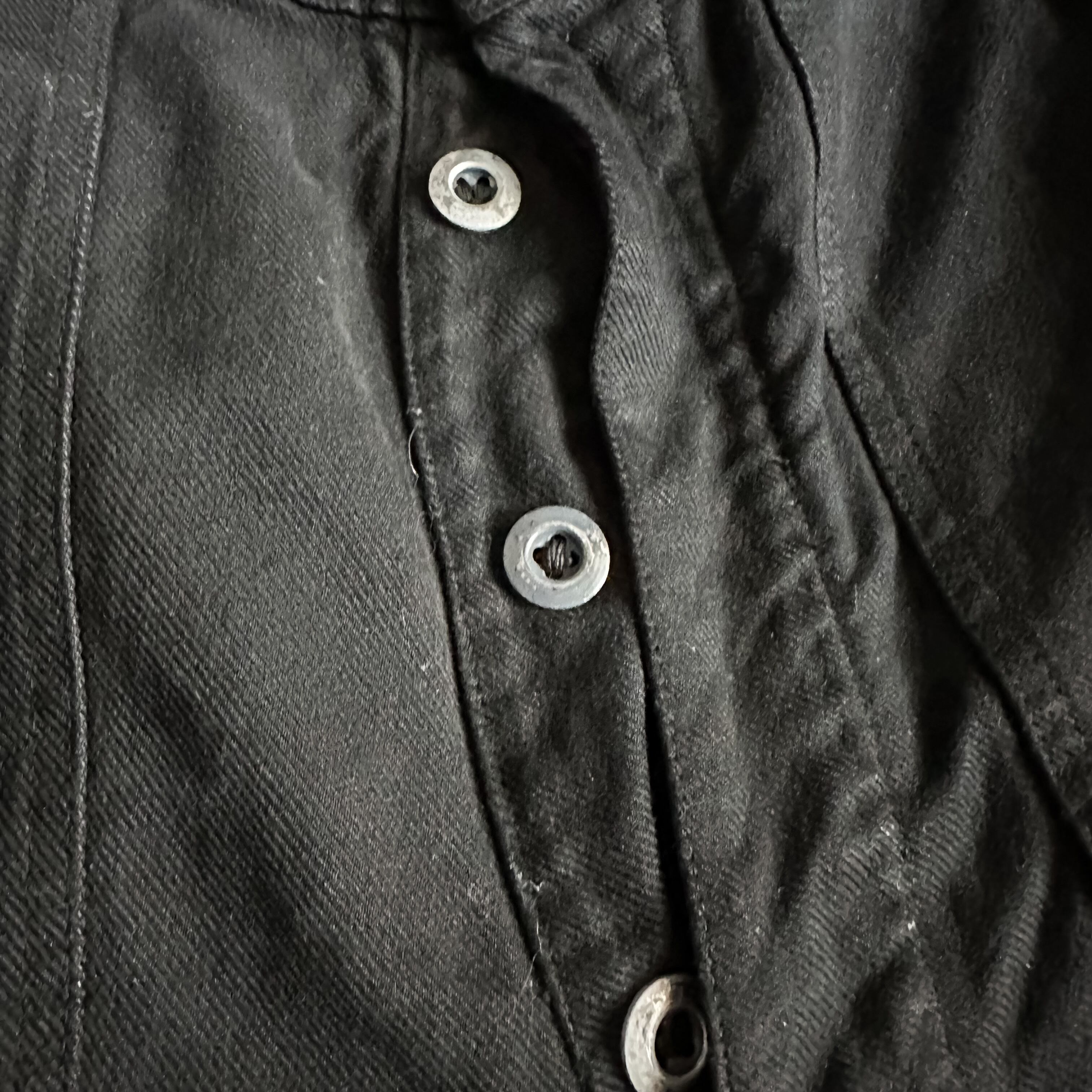 後染めブラックにメタルのボタンがまた映えるんですよね。
