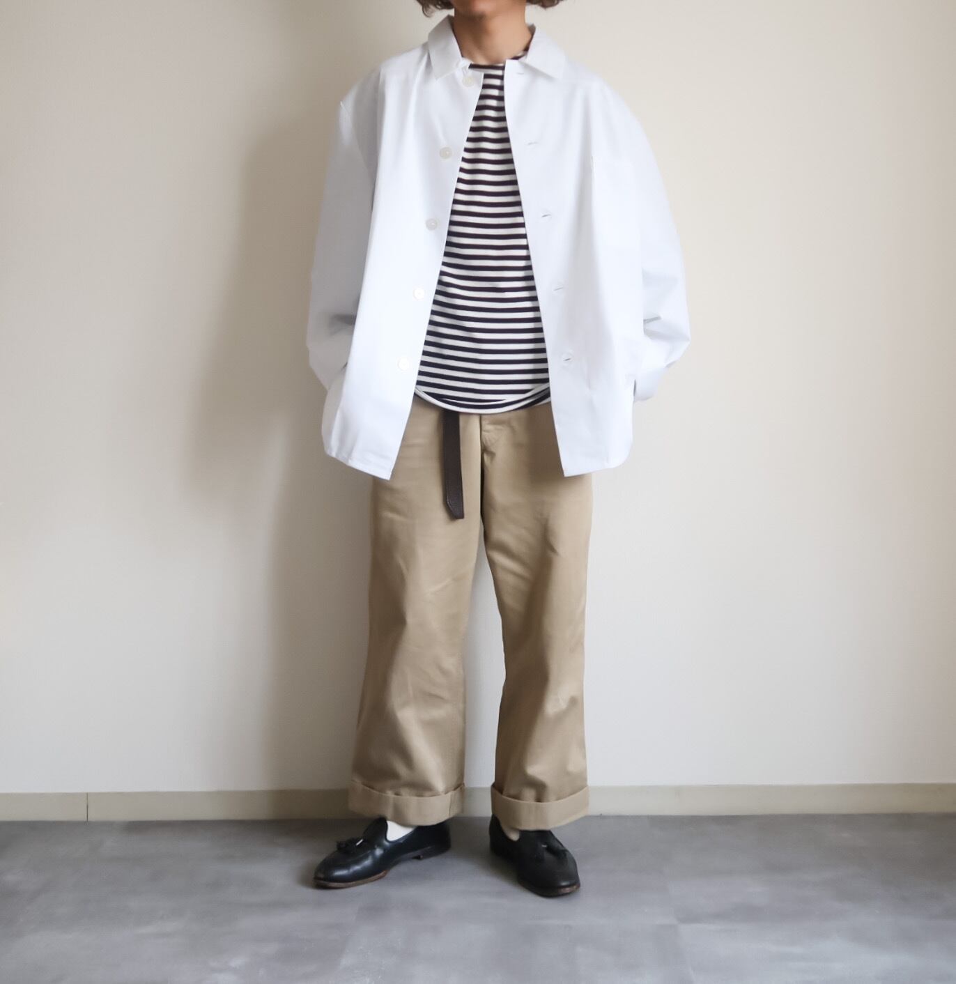 ブルーやネイビーのユーロワークジャケットはありますが、ホワイトって意外に出てこないですよね。