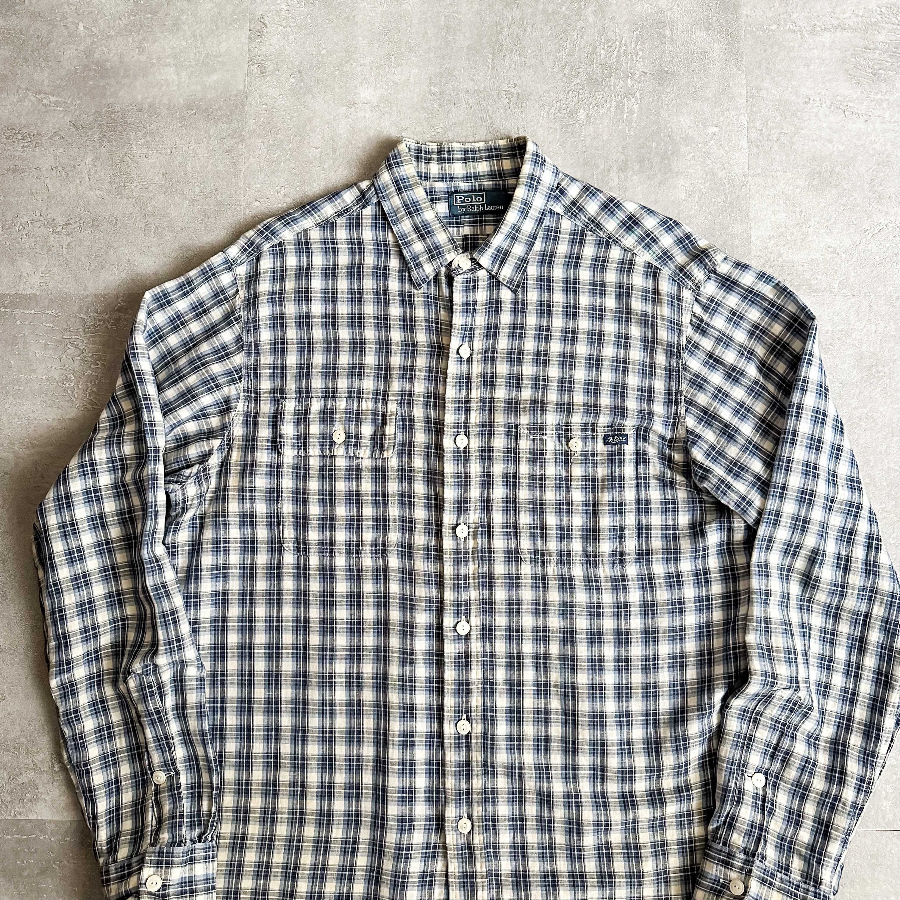 1990's~ "Polo Ralph Lauren" plaid pattern linen cotton shirt
