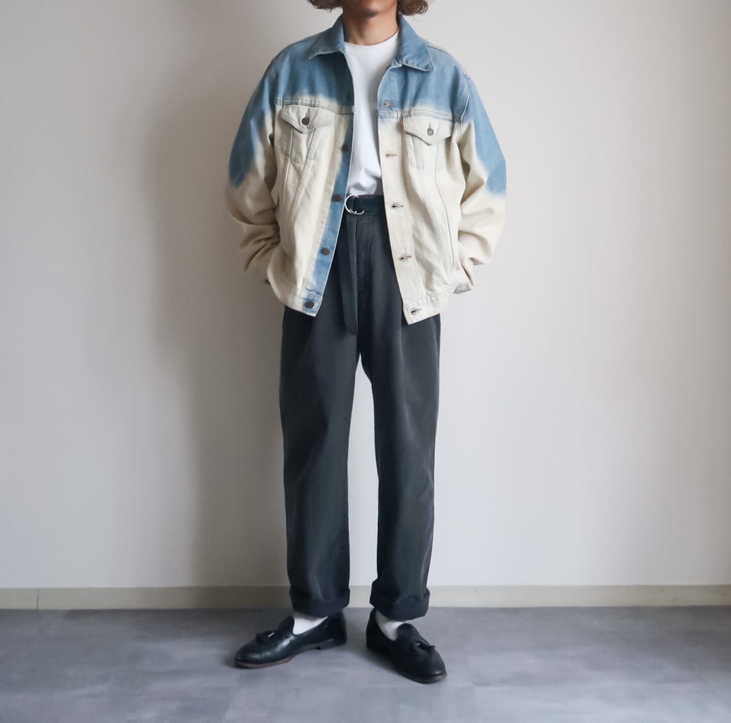 上部の切り替え位置付近より下がブリーチ加工された、一点物感のある非常に珍しい一着。