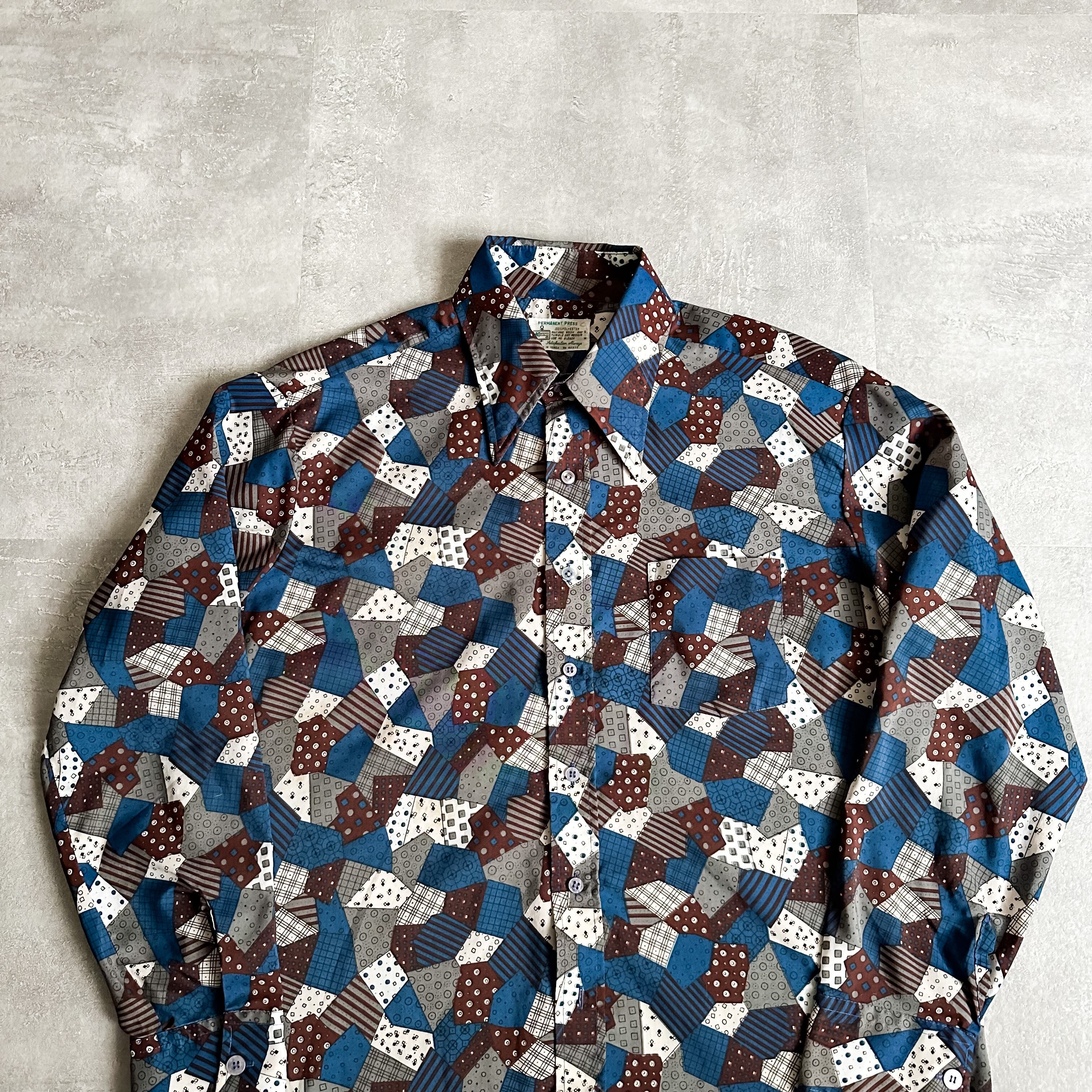 Vintage 1970's "Kmart" patchwork design polyester shirt