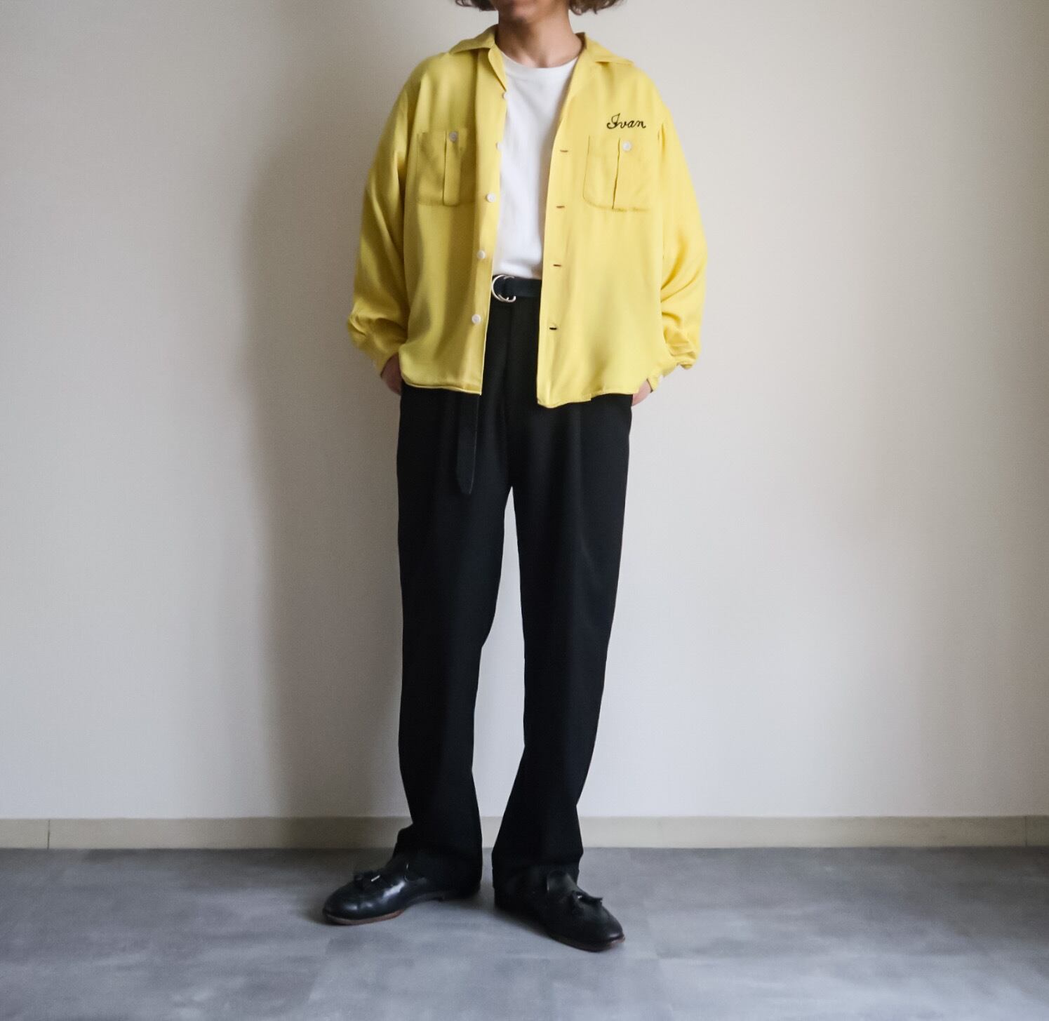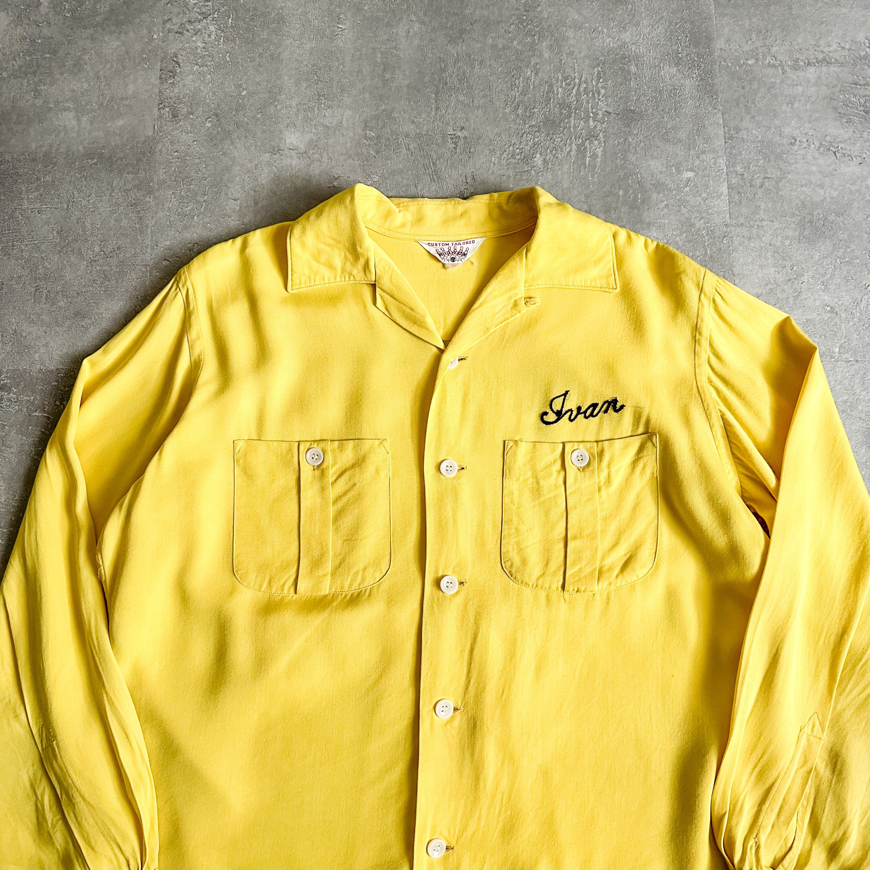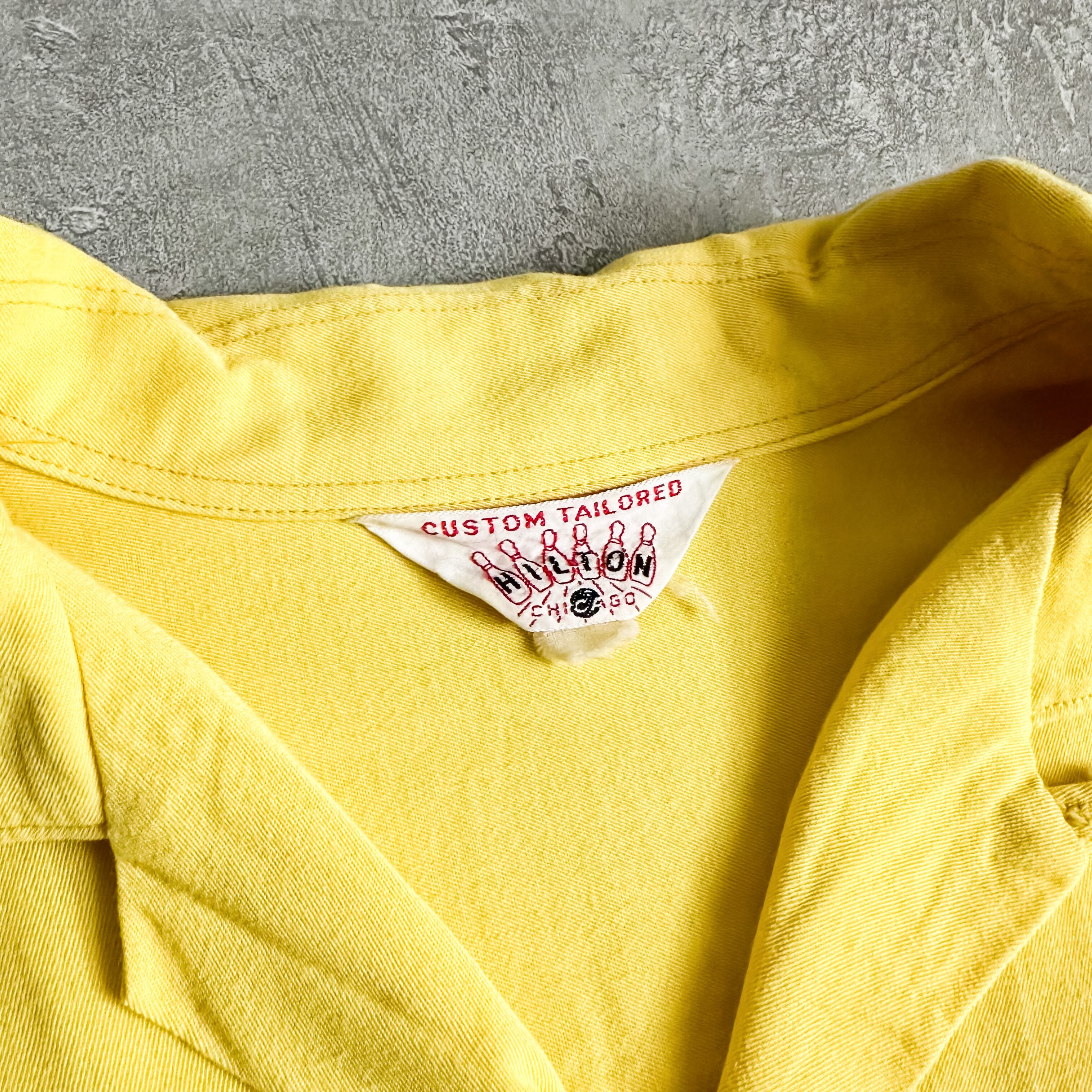 Vintage 1950's "HILTON" yellow chain stitch rayon bowling shirt