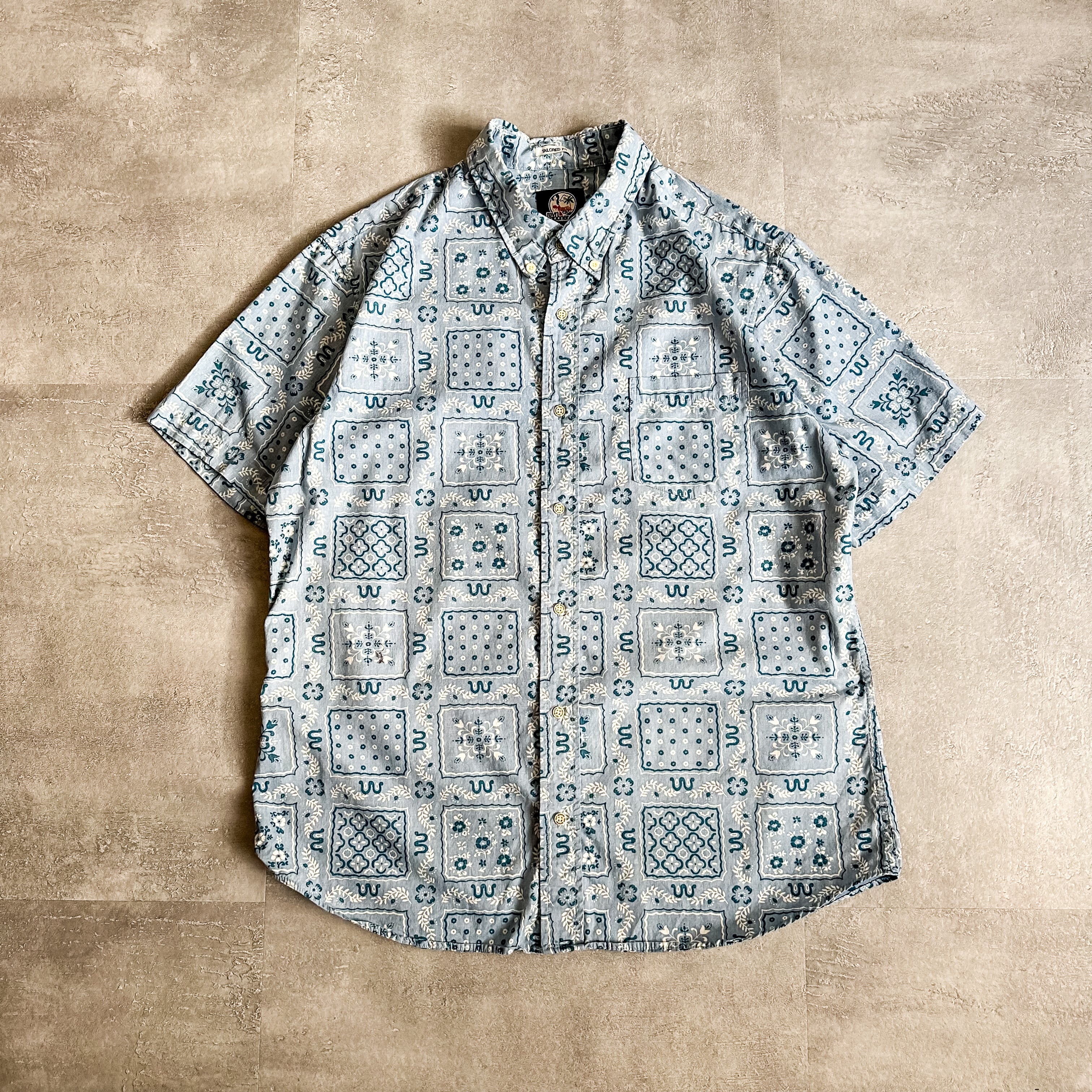 春夏らしいライトブルー系のカラーリングに、全面にバンダナパターンがプリントされた非常にグッドな一枚です。