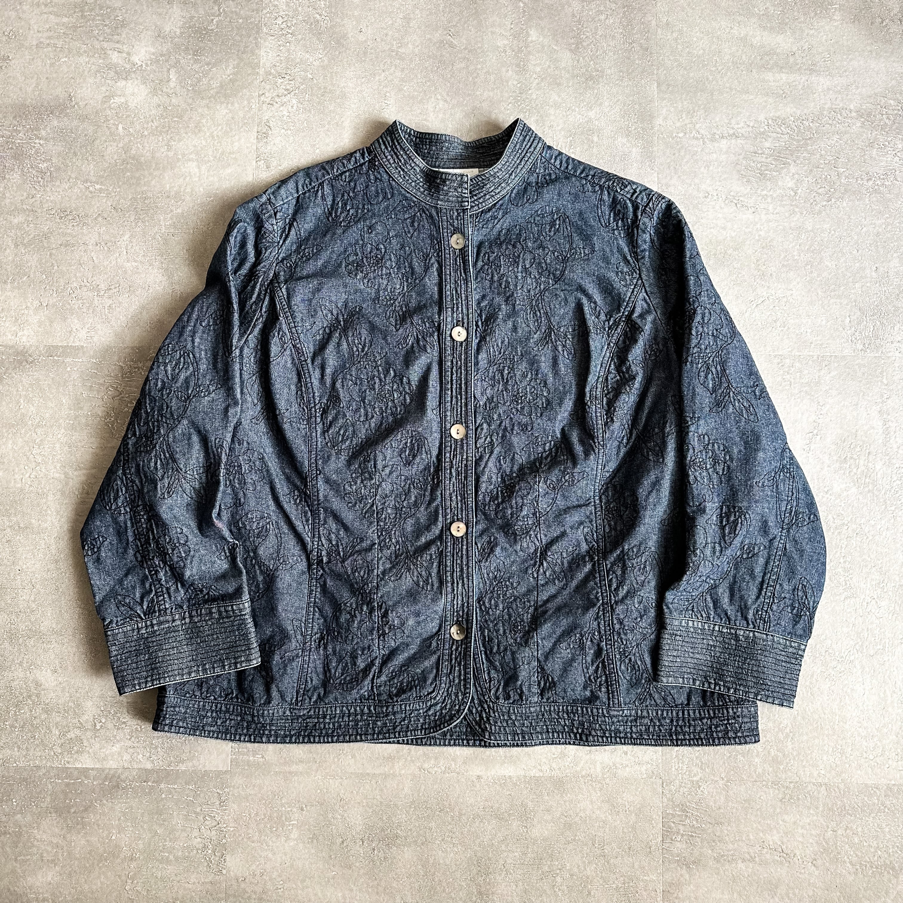 スタンドカラーに全面にボタニカル柄の刺繍が施された素晴らしいデザイン。