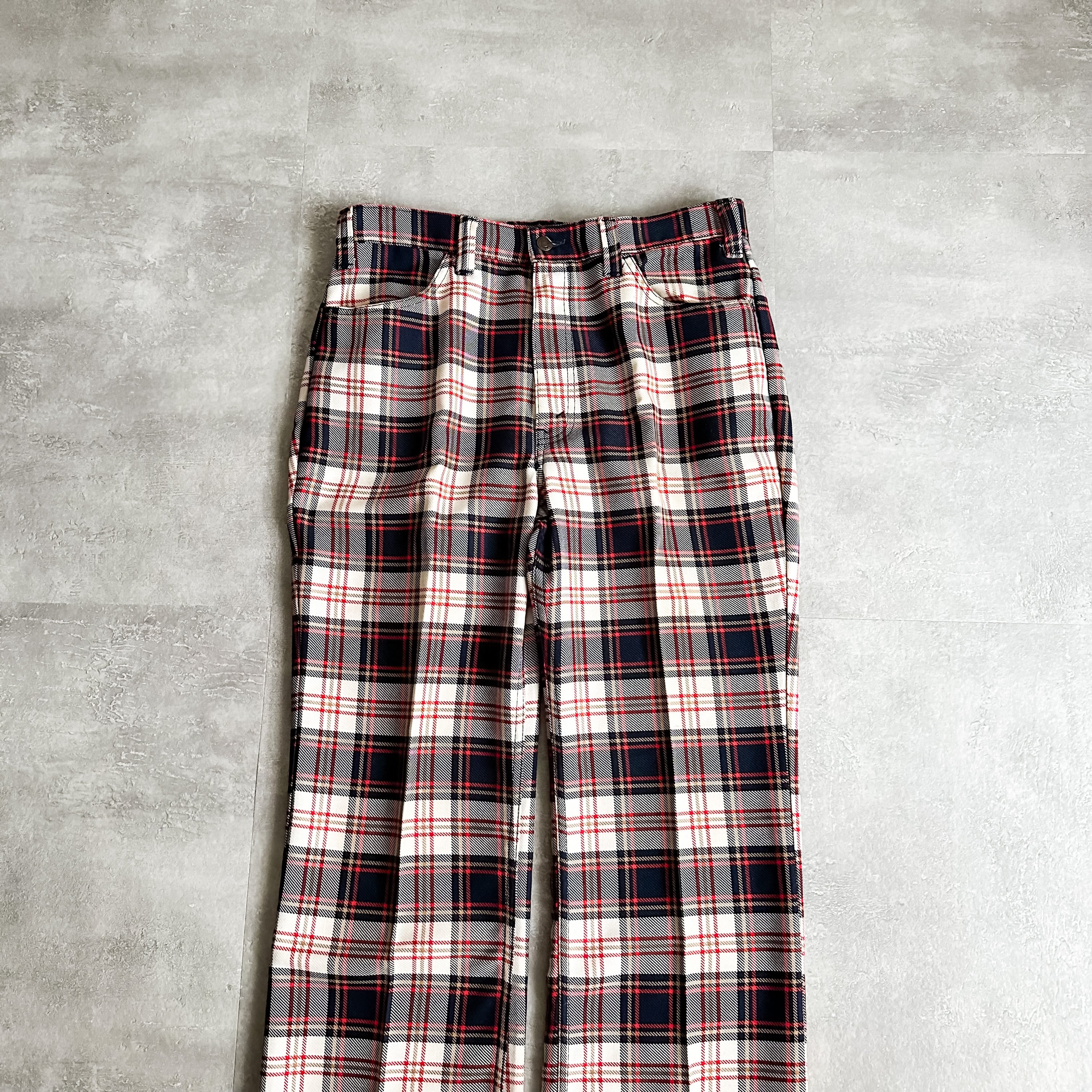 Vintage 1970's Levi's 546 BIG E "Gentleman's Jeans" plaid pattern flare pants