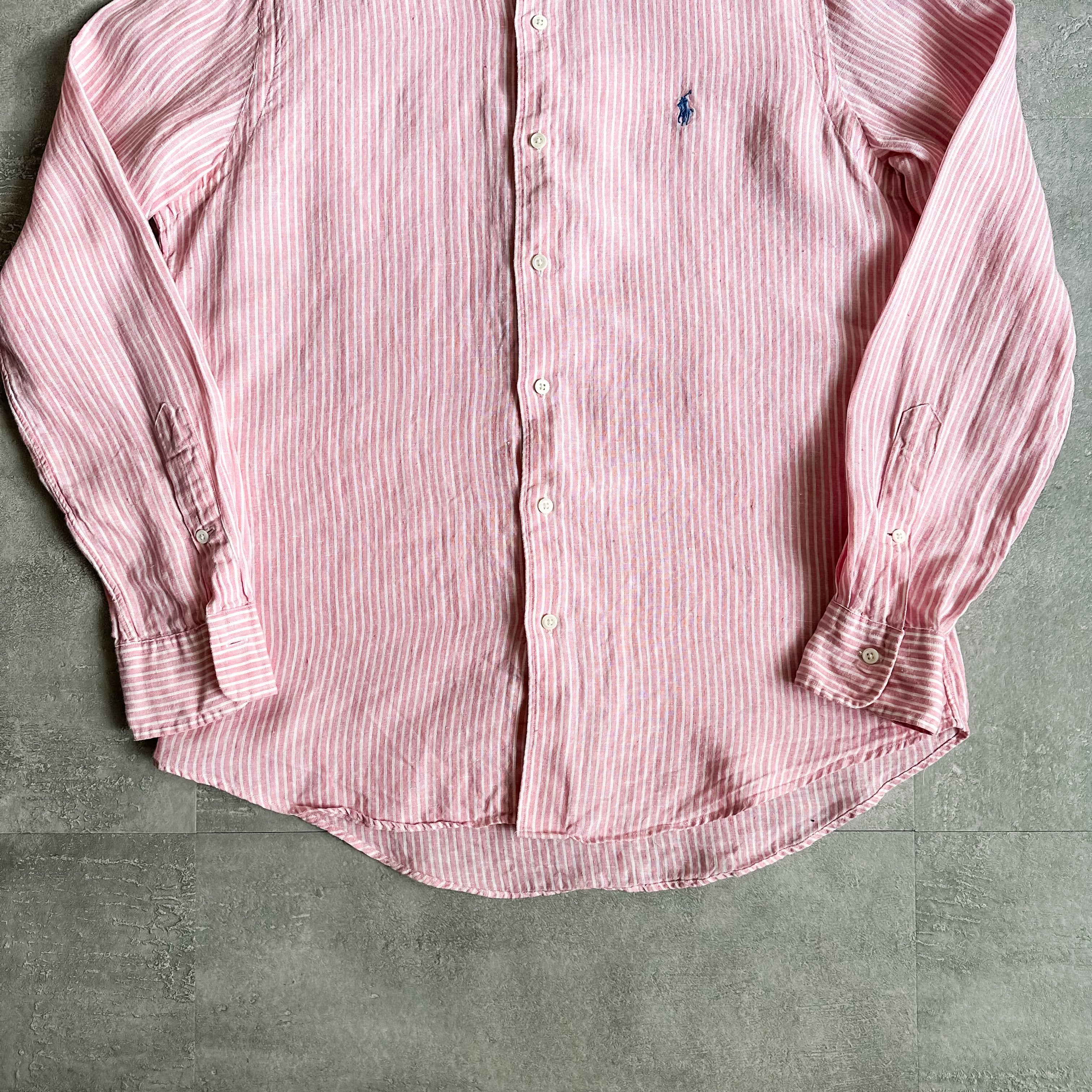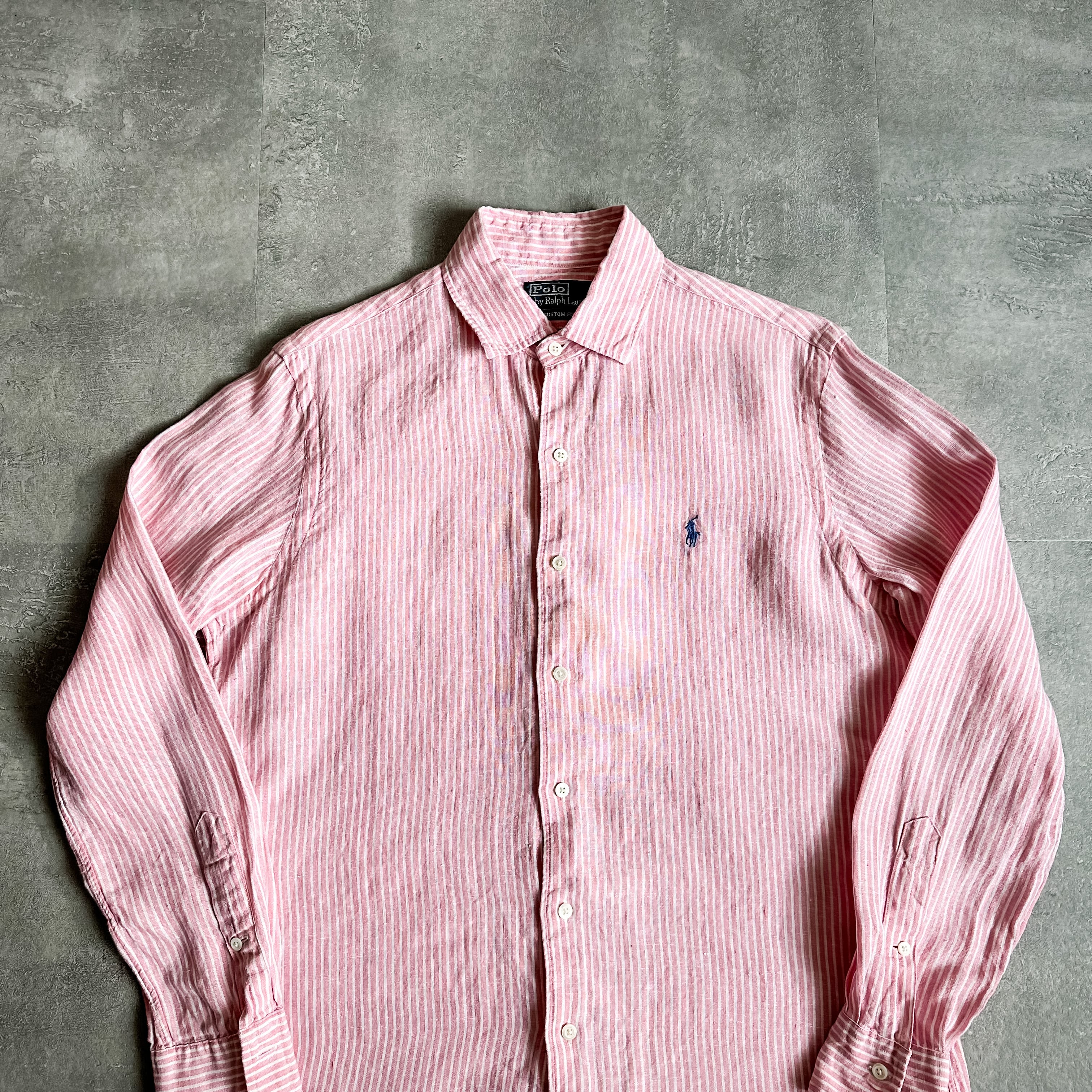1990's~ "Polo Ralph Lauren" pink stripe pattern linen shirt