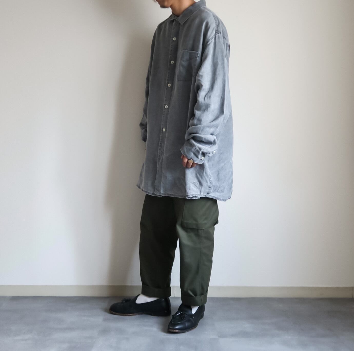1990's~ "Tommy Bahama" gray bigsize linen shirt