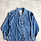 1990's concho button leather piping double breast denim shirt