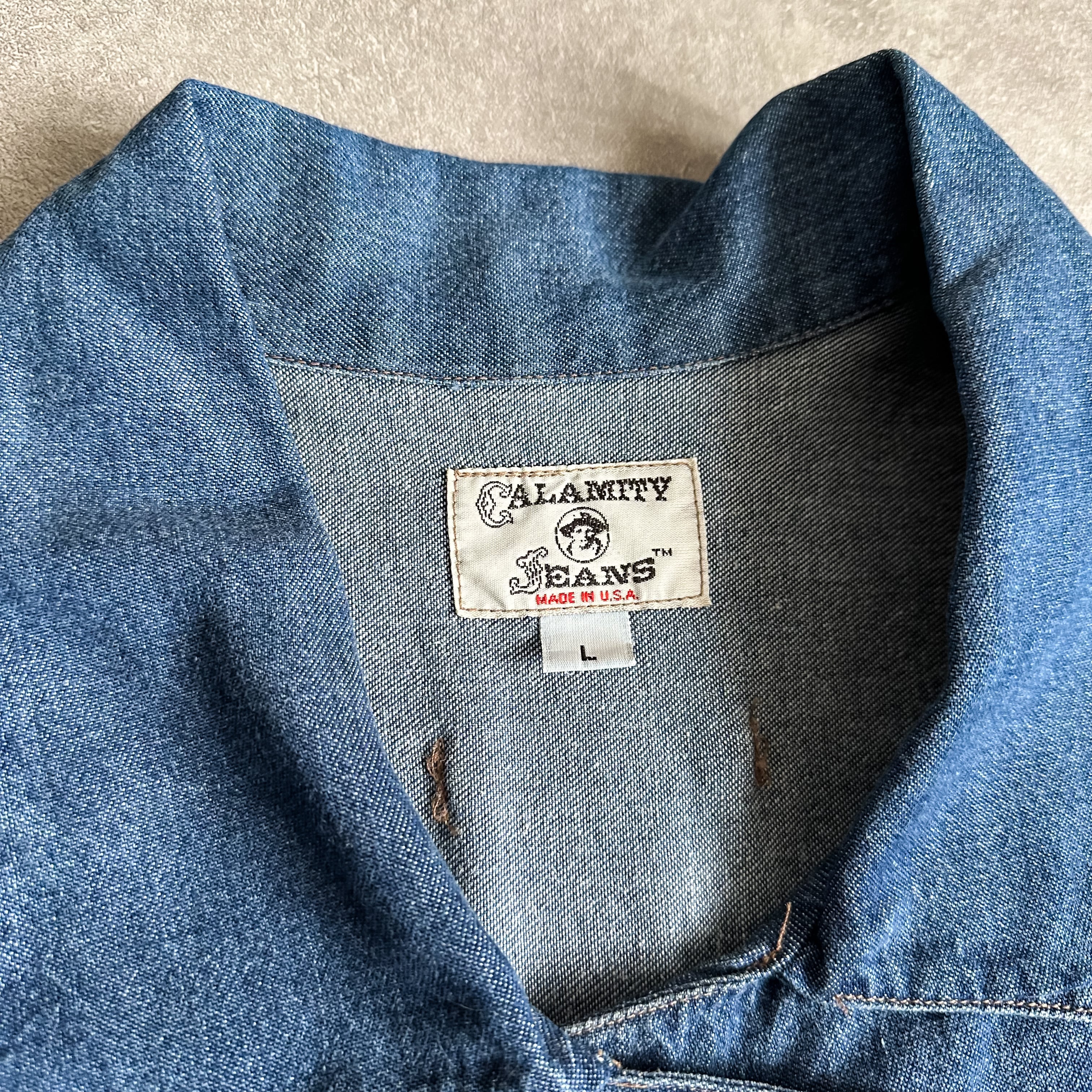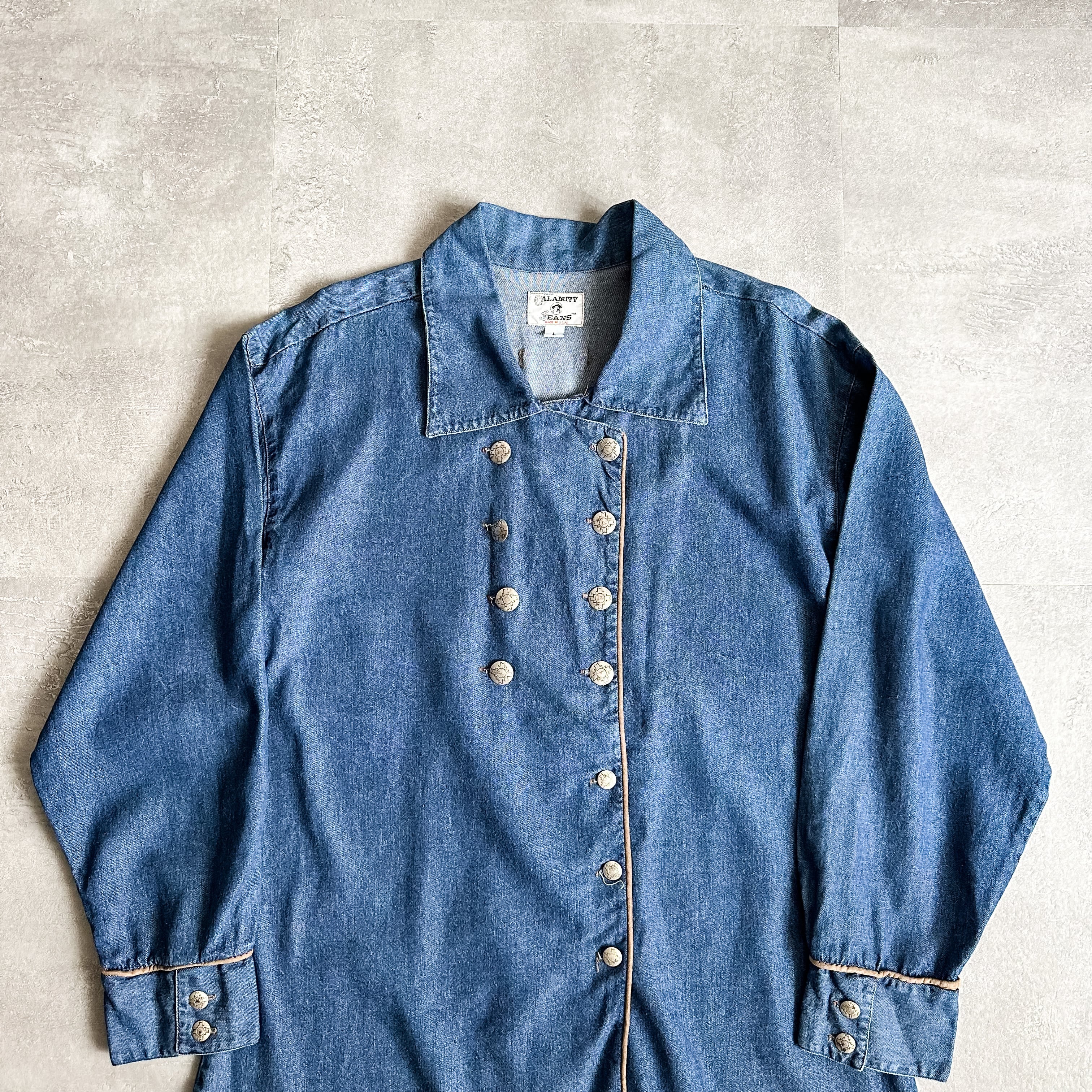 特徴 :1990's頃の珍しいダブルブレストデザインになったデニムシャツ。