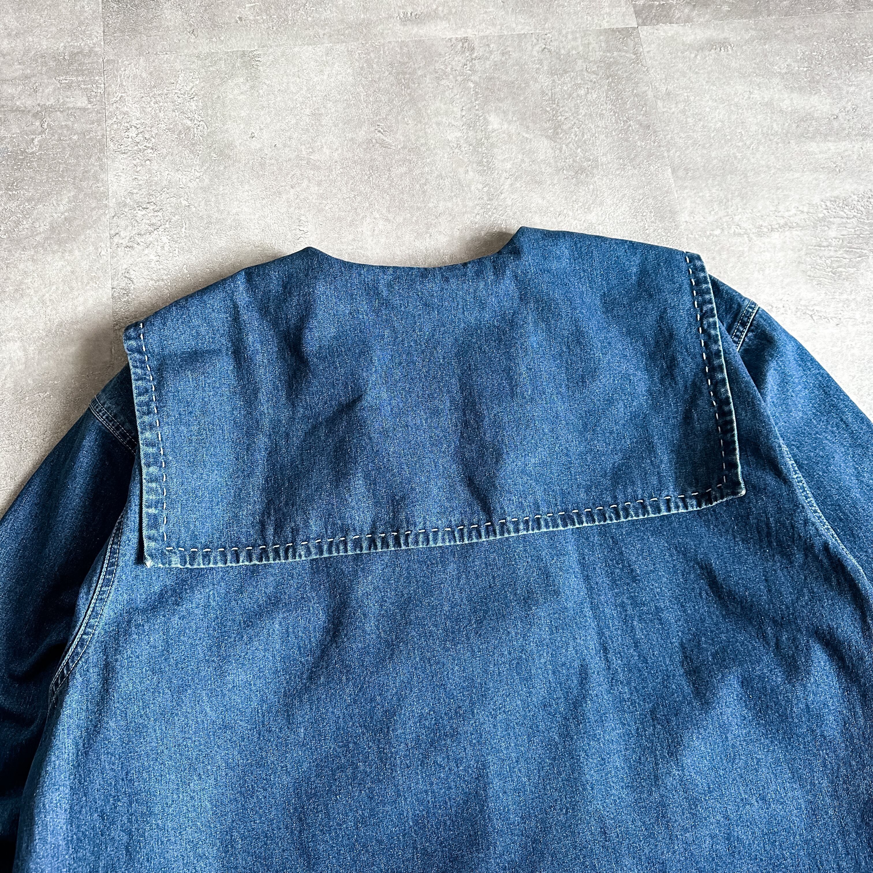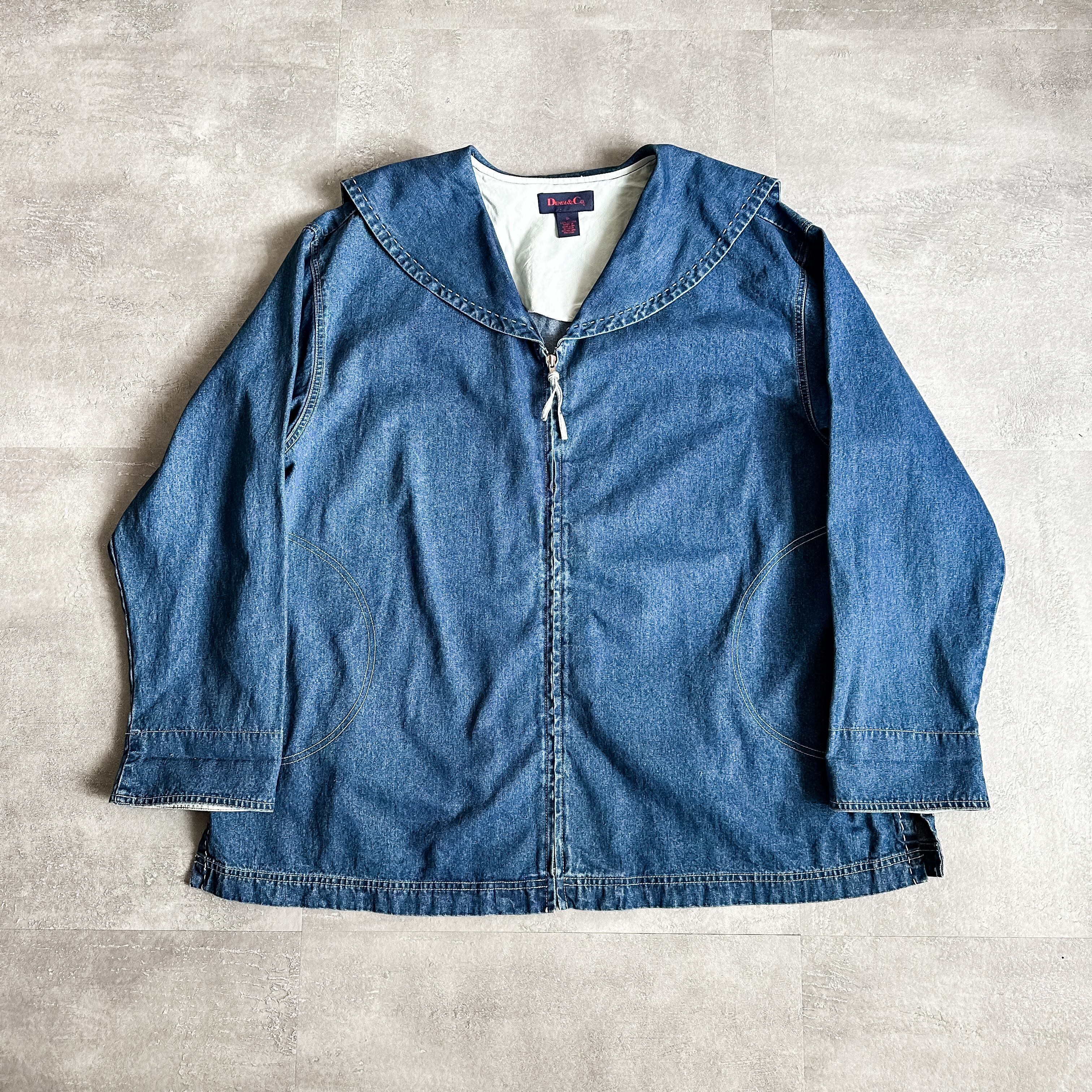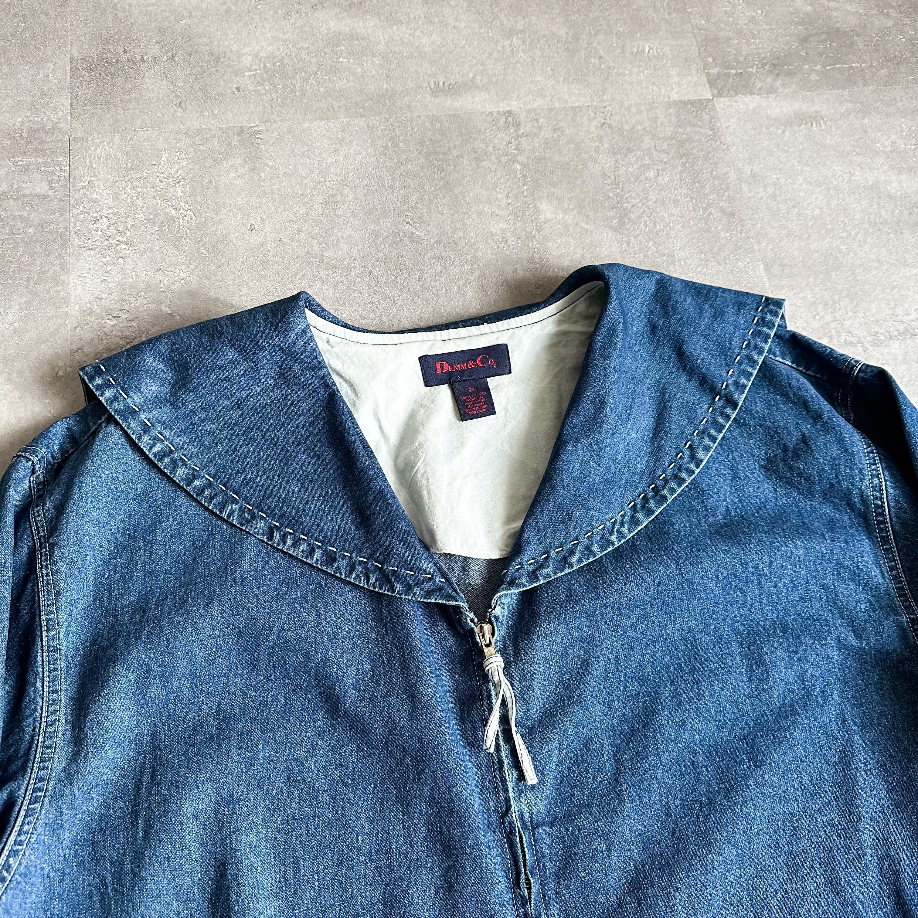 1990's "Denim&co" sailor collar fullzip denim jacket
