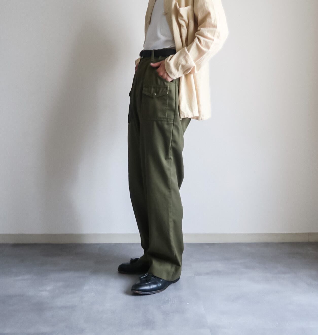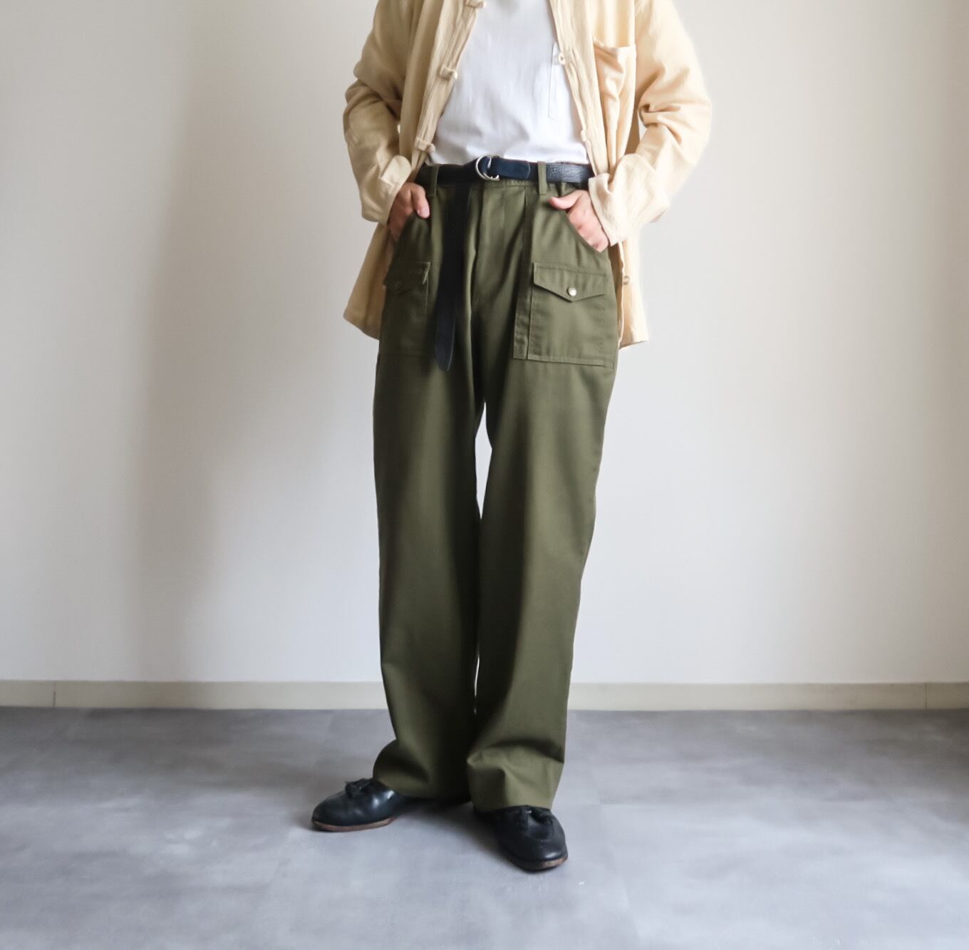 ミリタリーライクなベイカーポケットの上に、更にフラップ付きのポケットが付くディテールが非常に洒落た一本です。