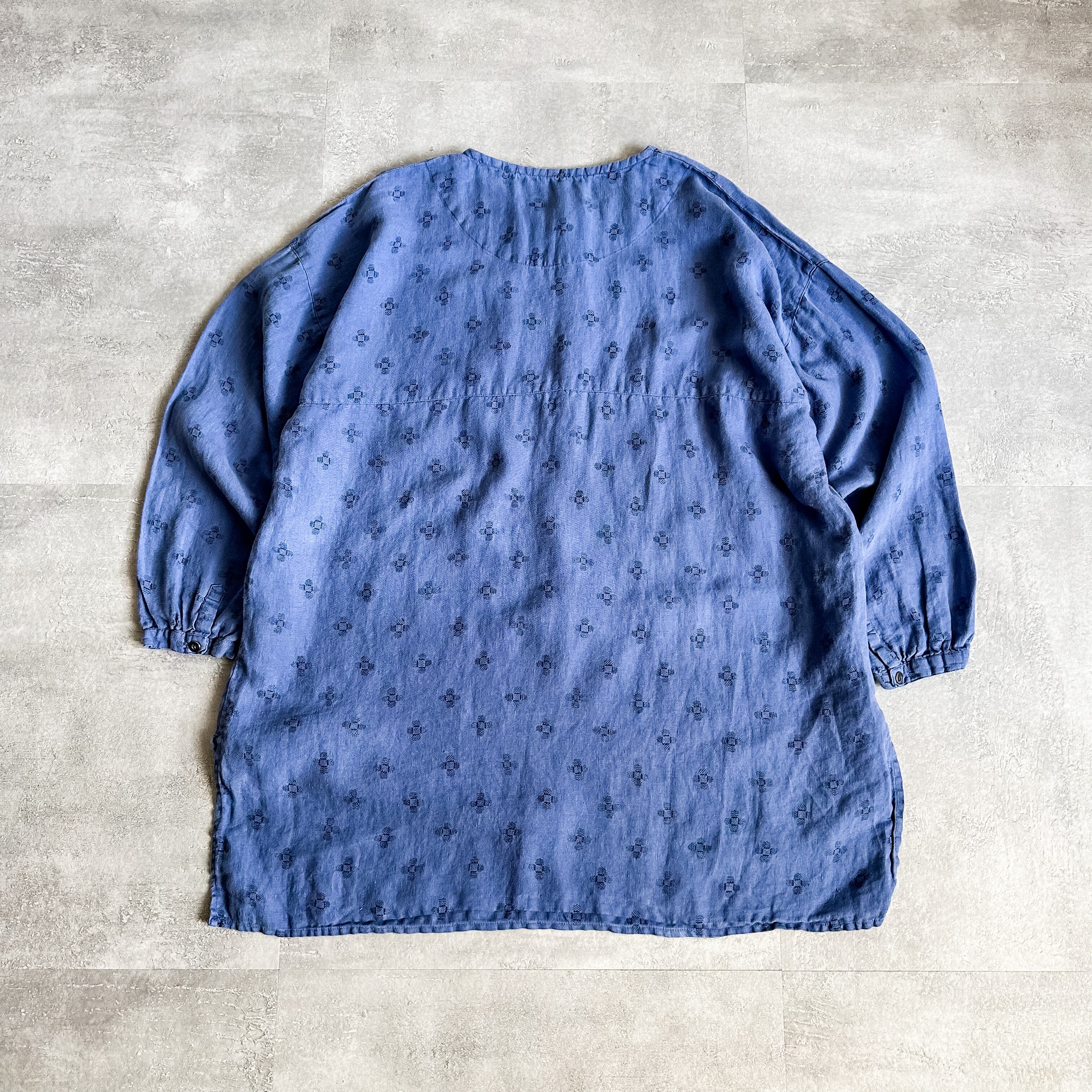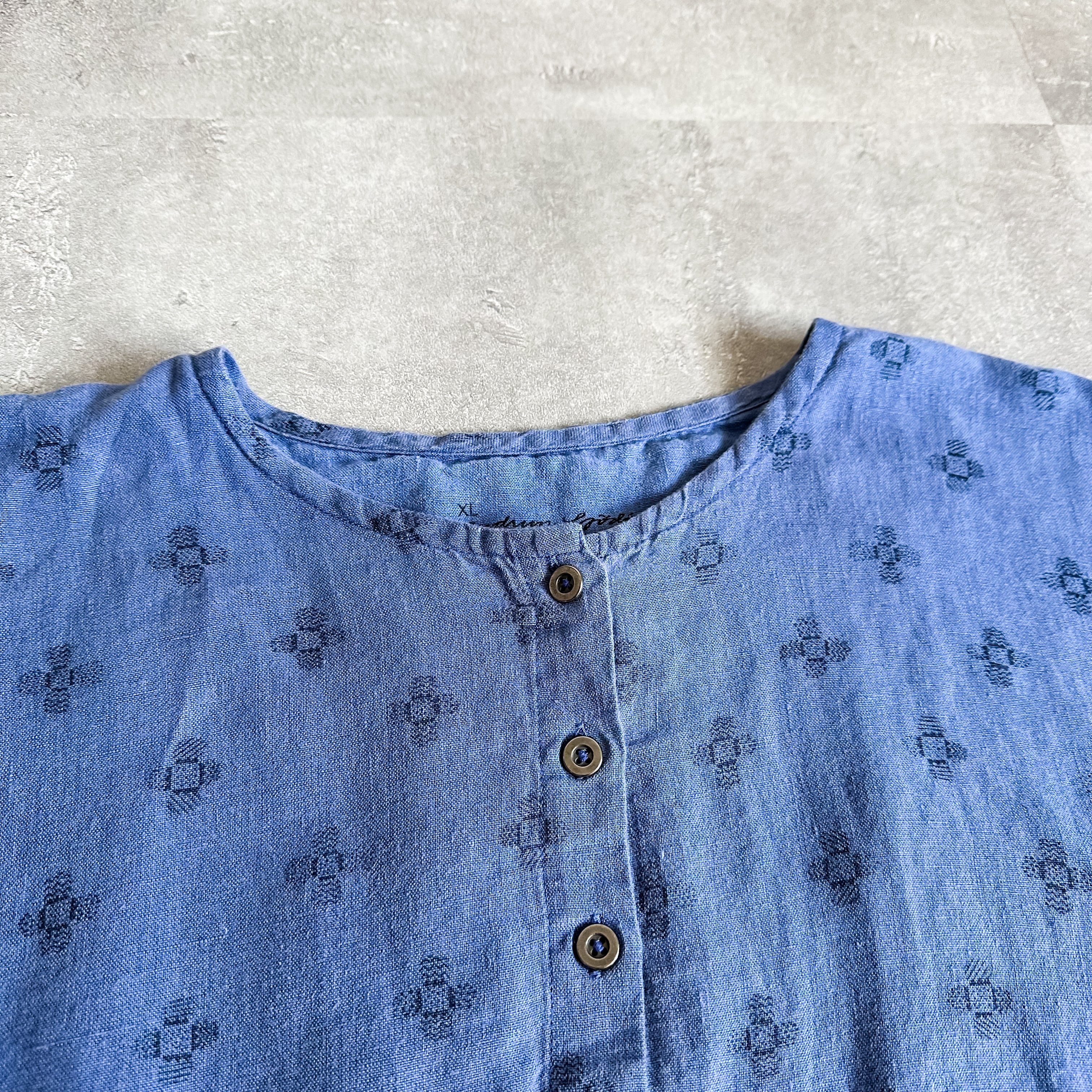 1990's~ patterned allover no collar linen grandfather shirt
