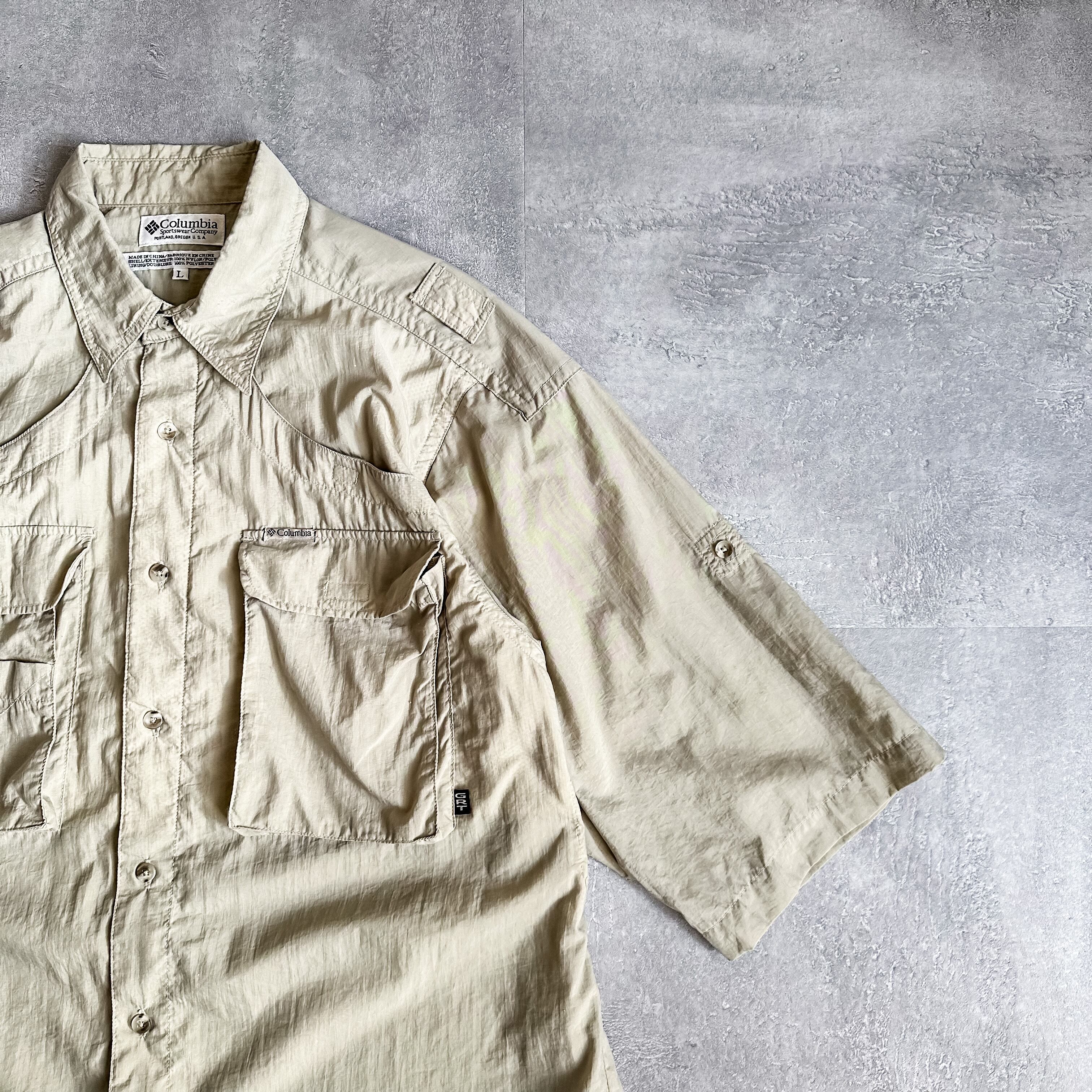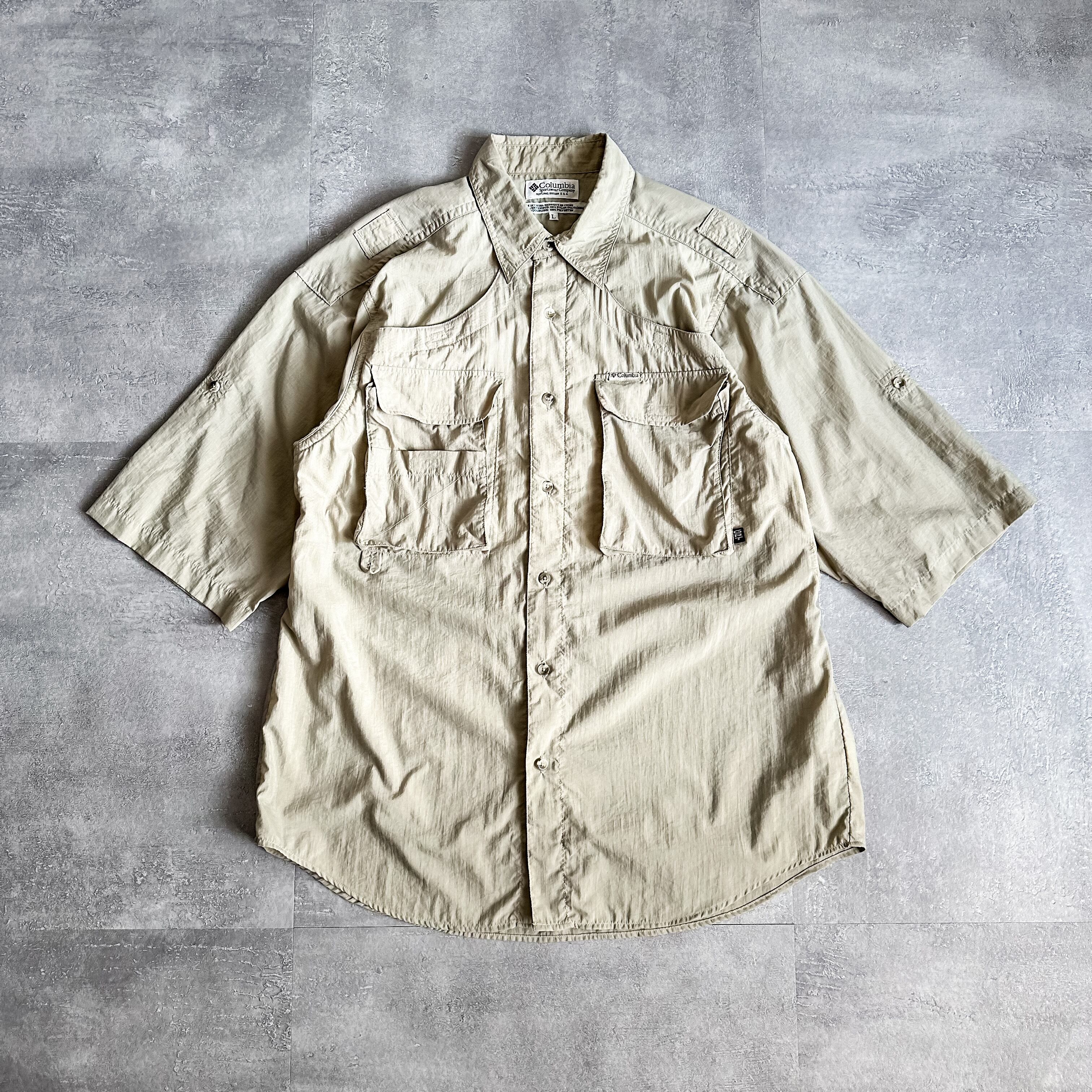 1990's~ Columbia "GRT" beige s/s fishing shirt