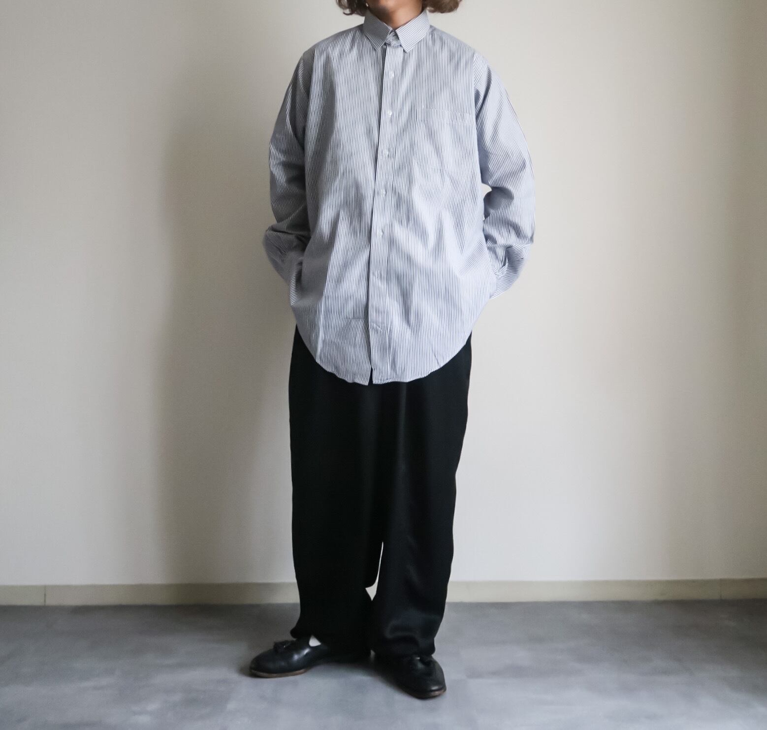 風合いの良いオールコットンのオックスフォード生地に、ホワイト×ダークグレーの大人な配色のストライプ柄。