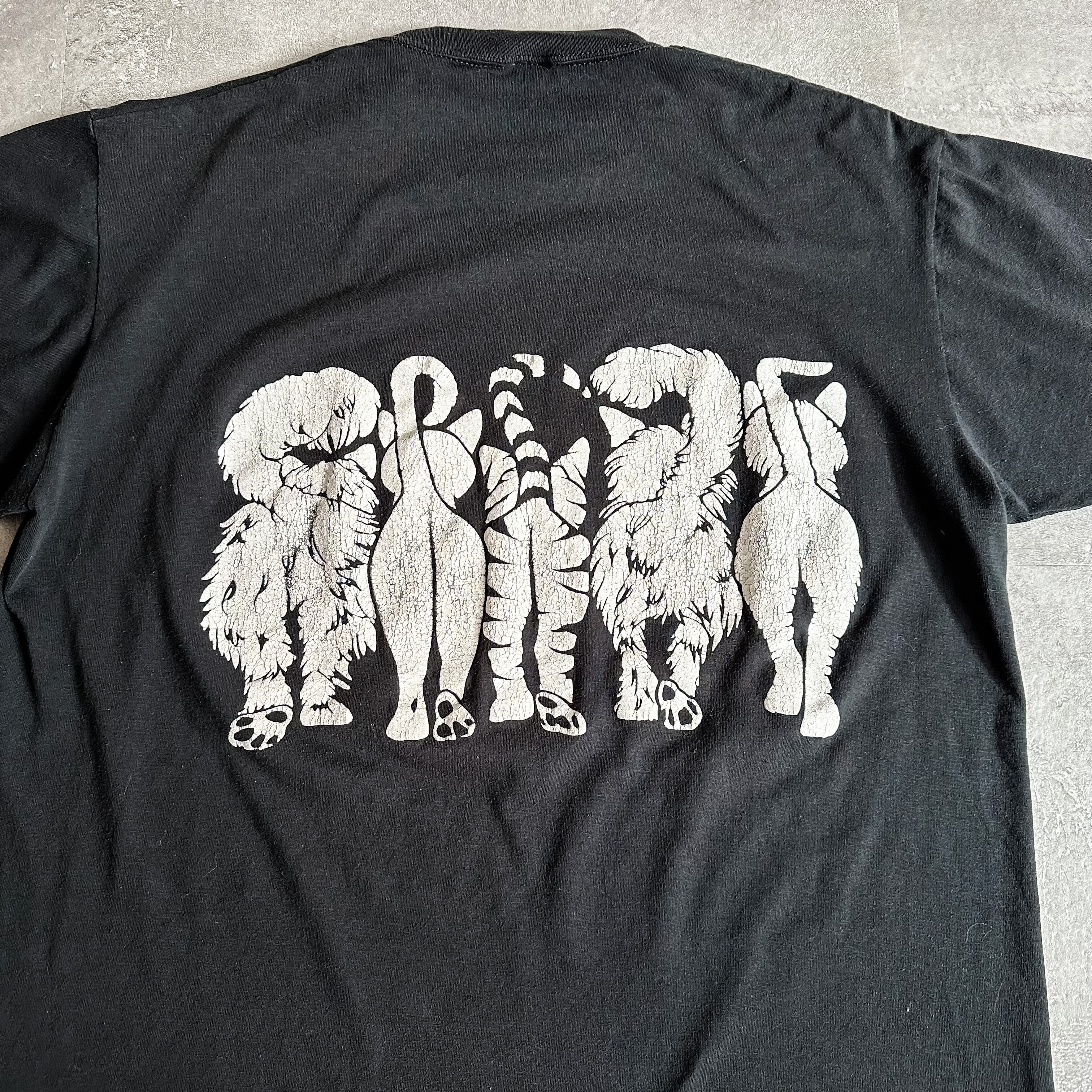 1990's "LINDA LORI" Heads and Tails cat print black tee made in USA