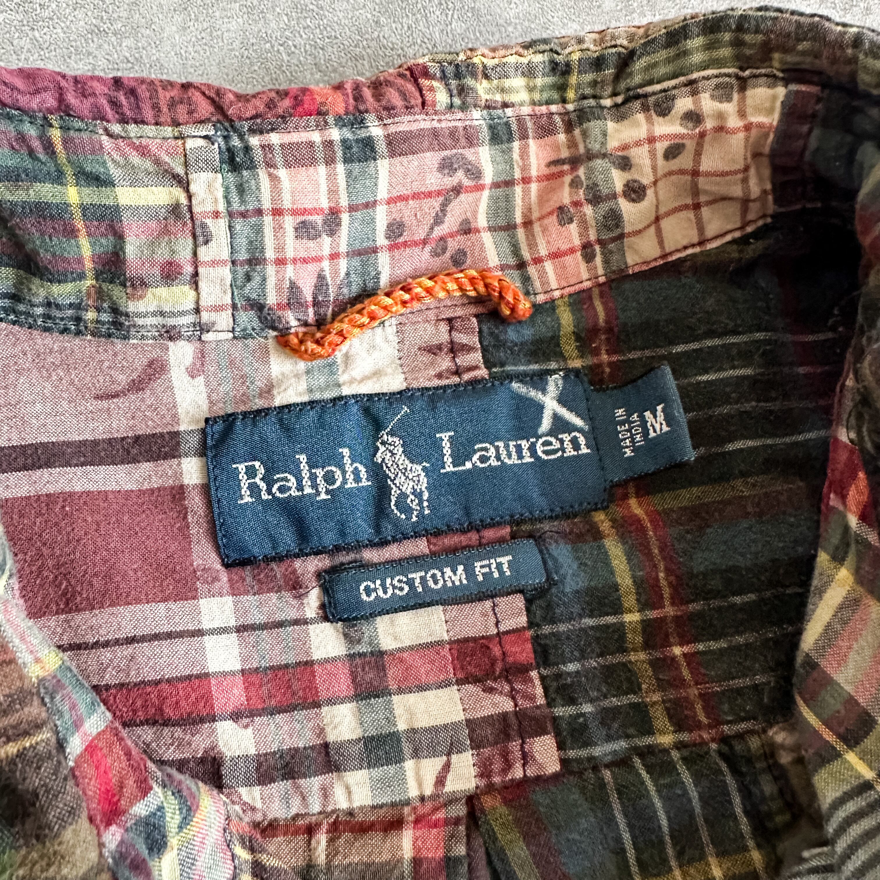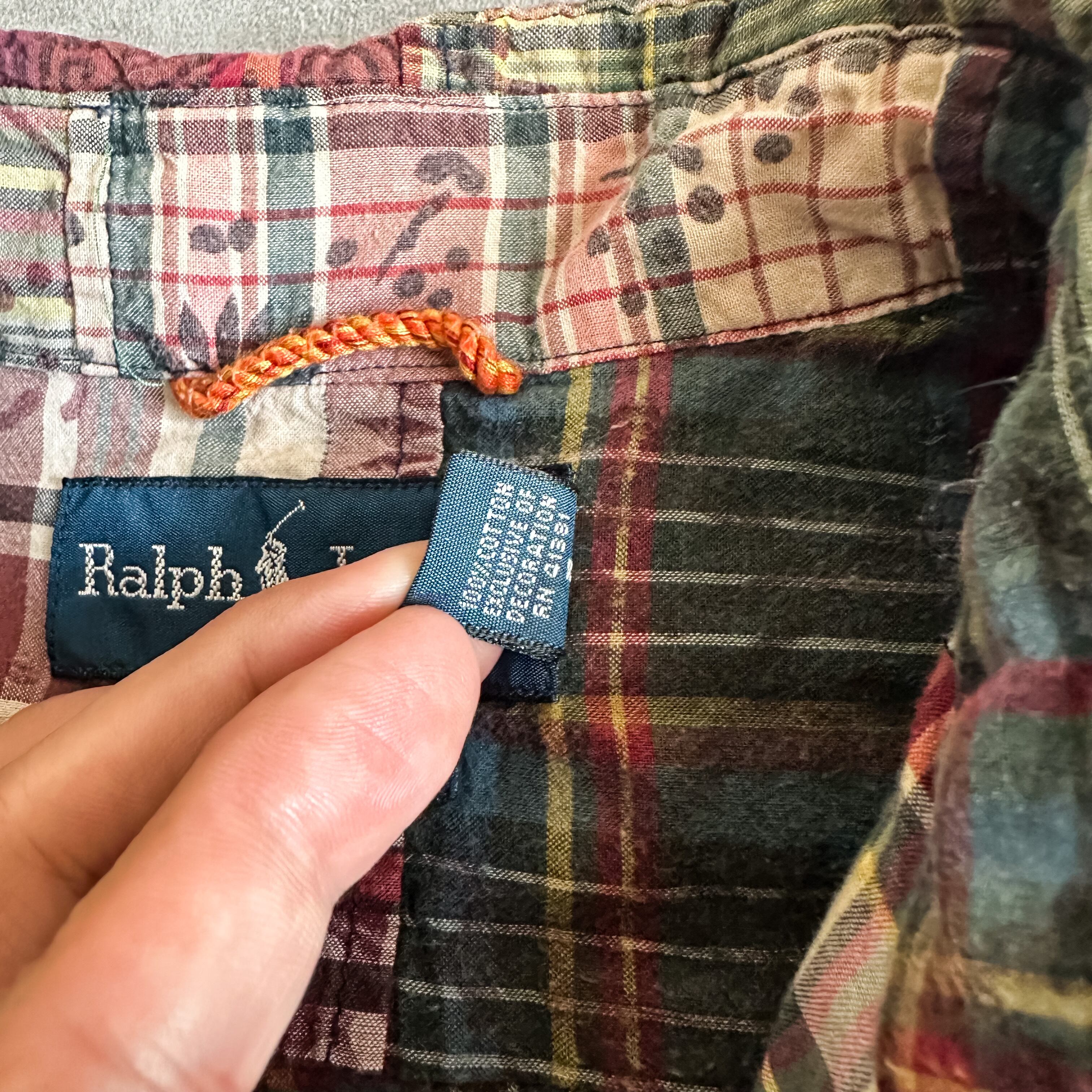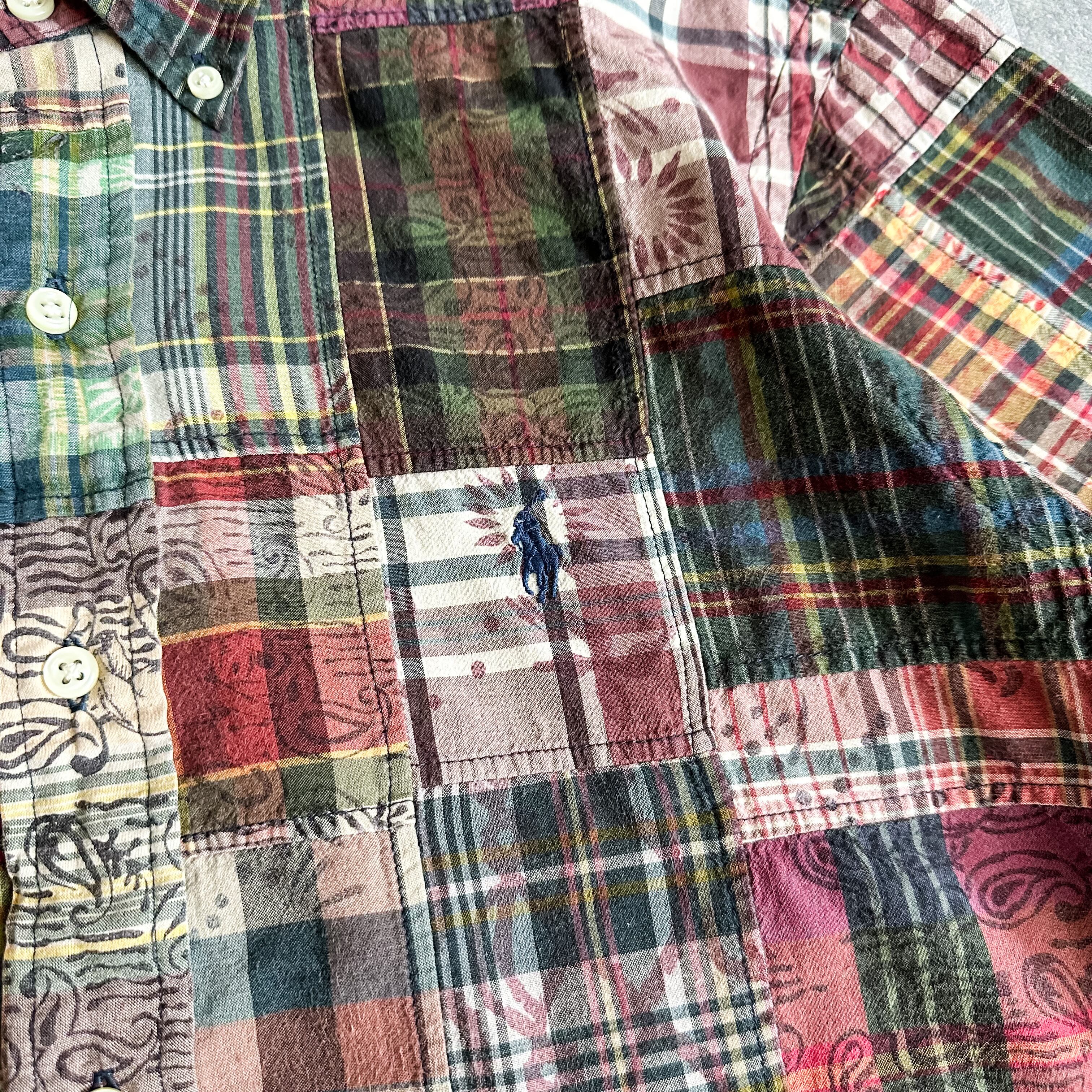 1990's~ "Ralph Lauren" india cotton madras check patchwork print shirt