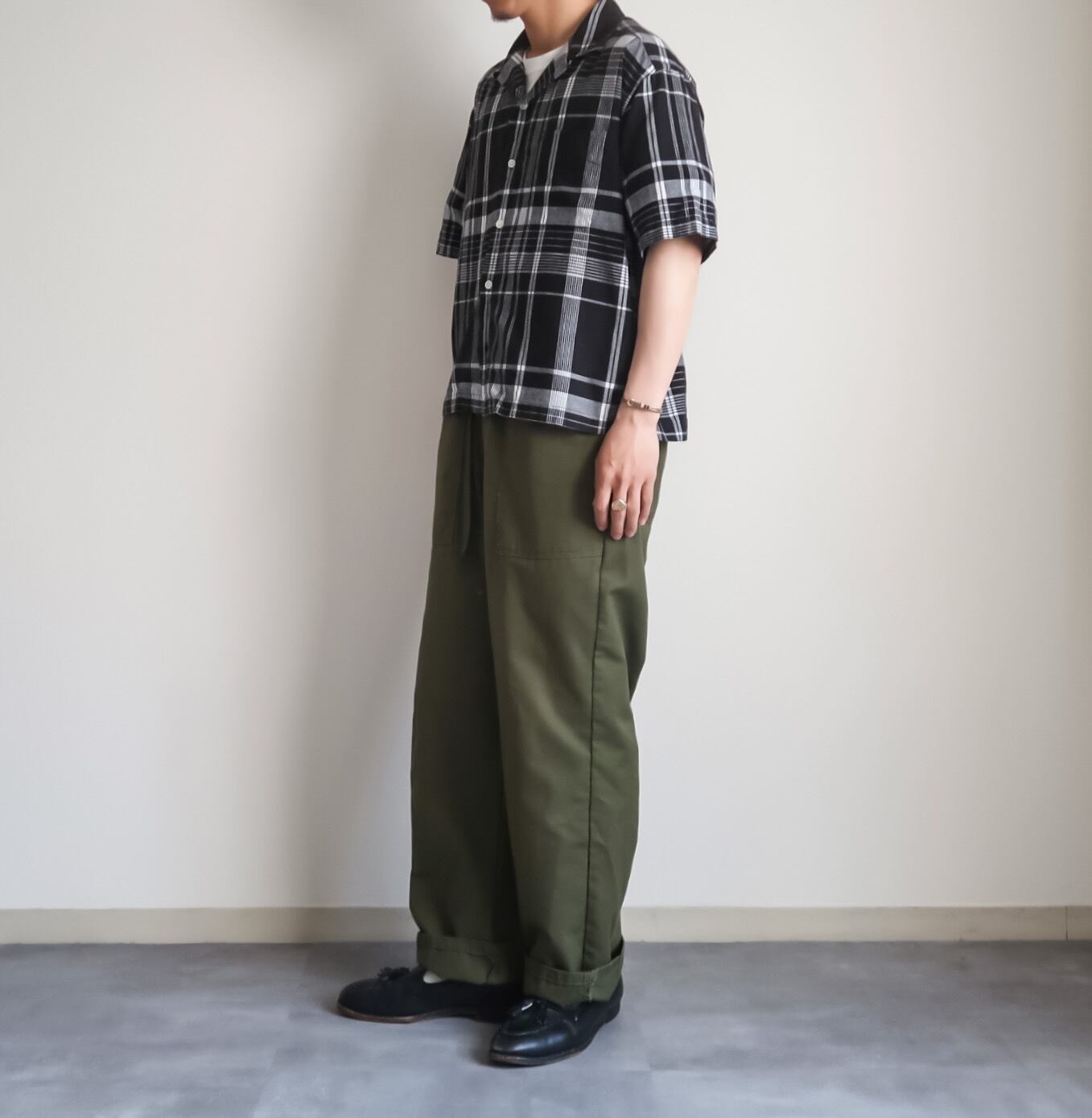 大人な雰囲気のあるブラックベースのモノトーンカラーのチェック柄が抜群にクールですね。