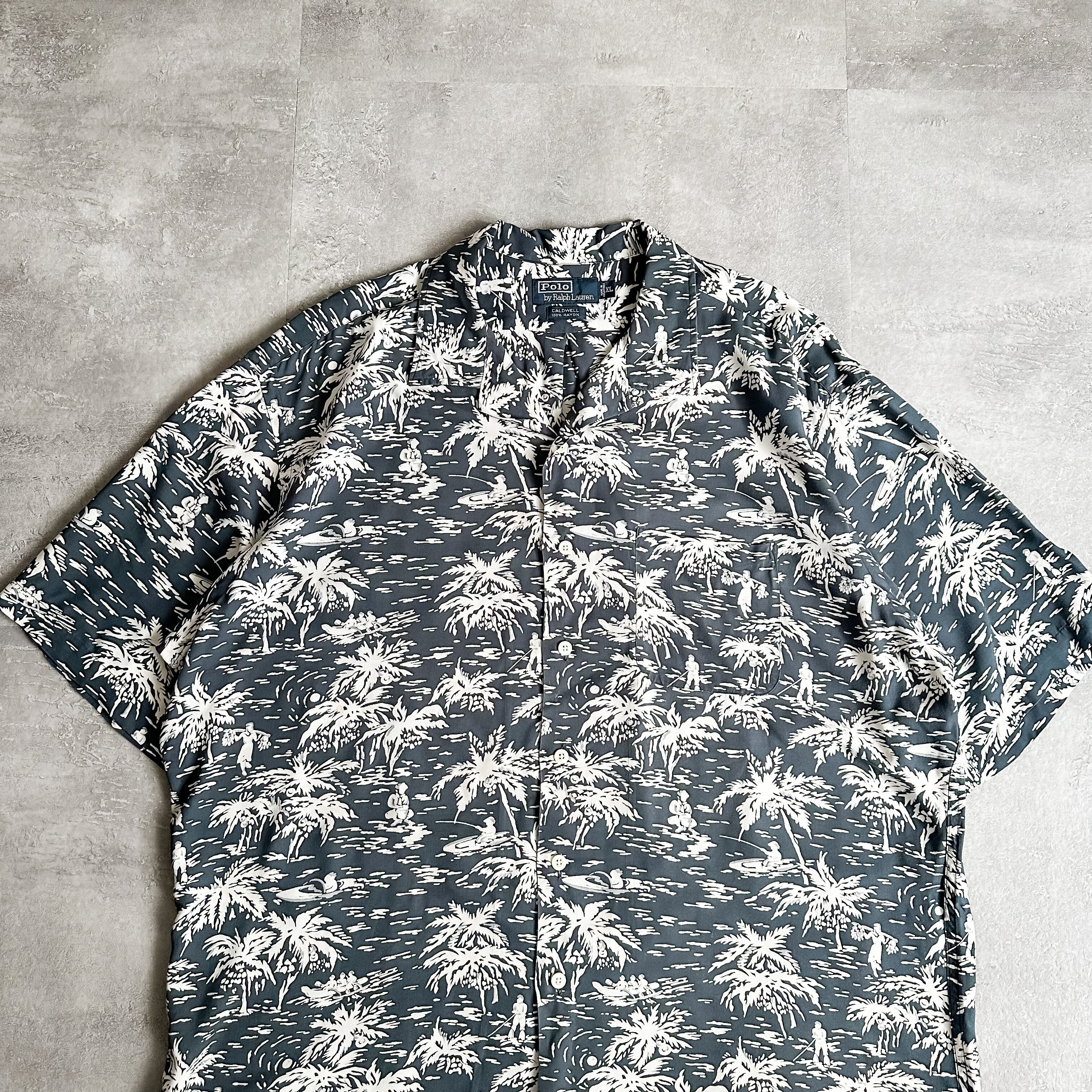 1990's "Polo Ralph Lauren" CALDWELL open collar rayon hawaiian S/S shirt