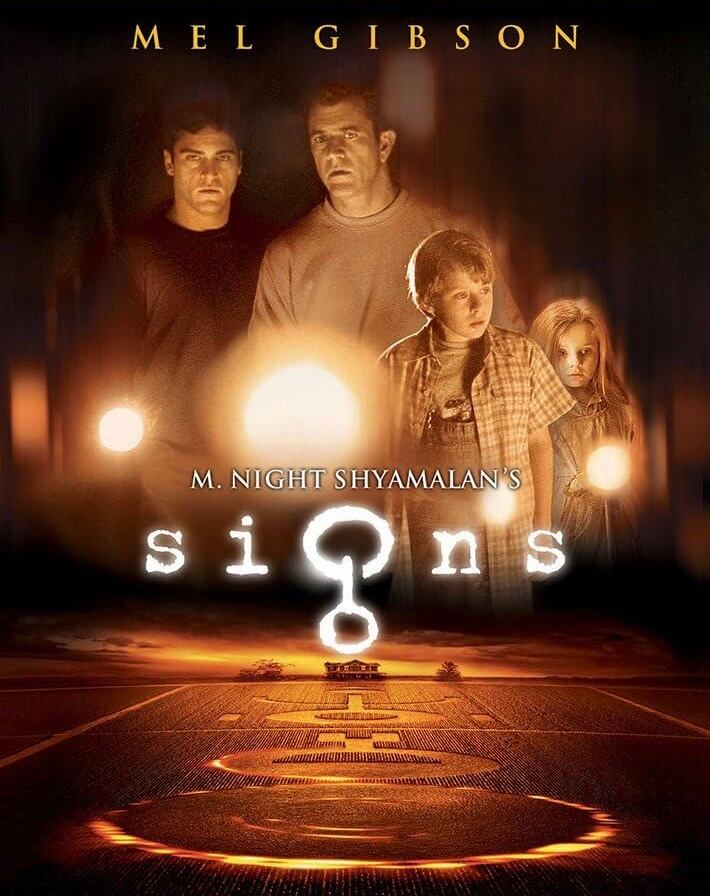 農場のミステリーサークルが印象的なナイトシャマラン監督の代表作"signs"の両面プリントになります。