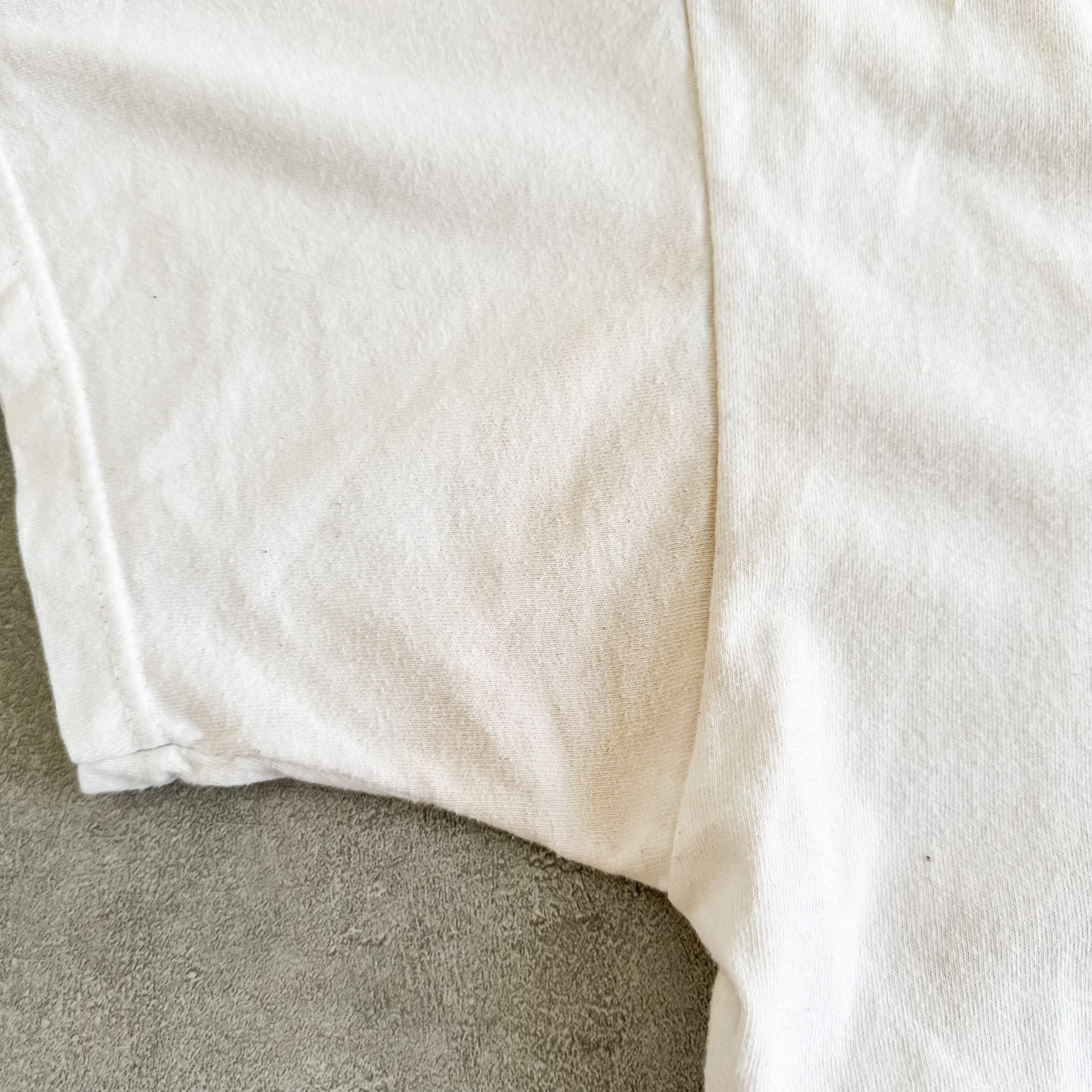 フルーツオブザルームのコットンボディーに、袖裾ダブルステッチ。