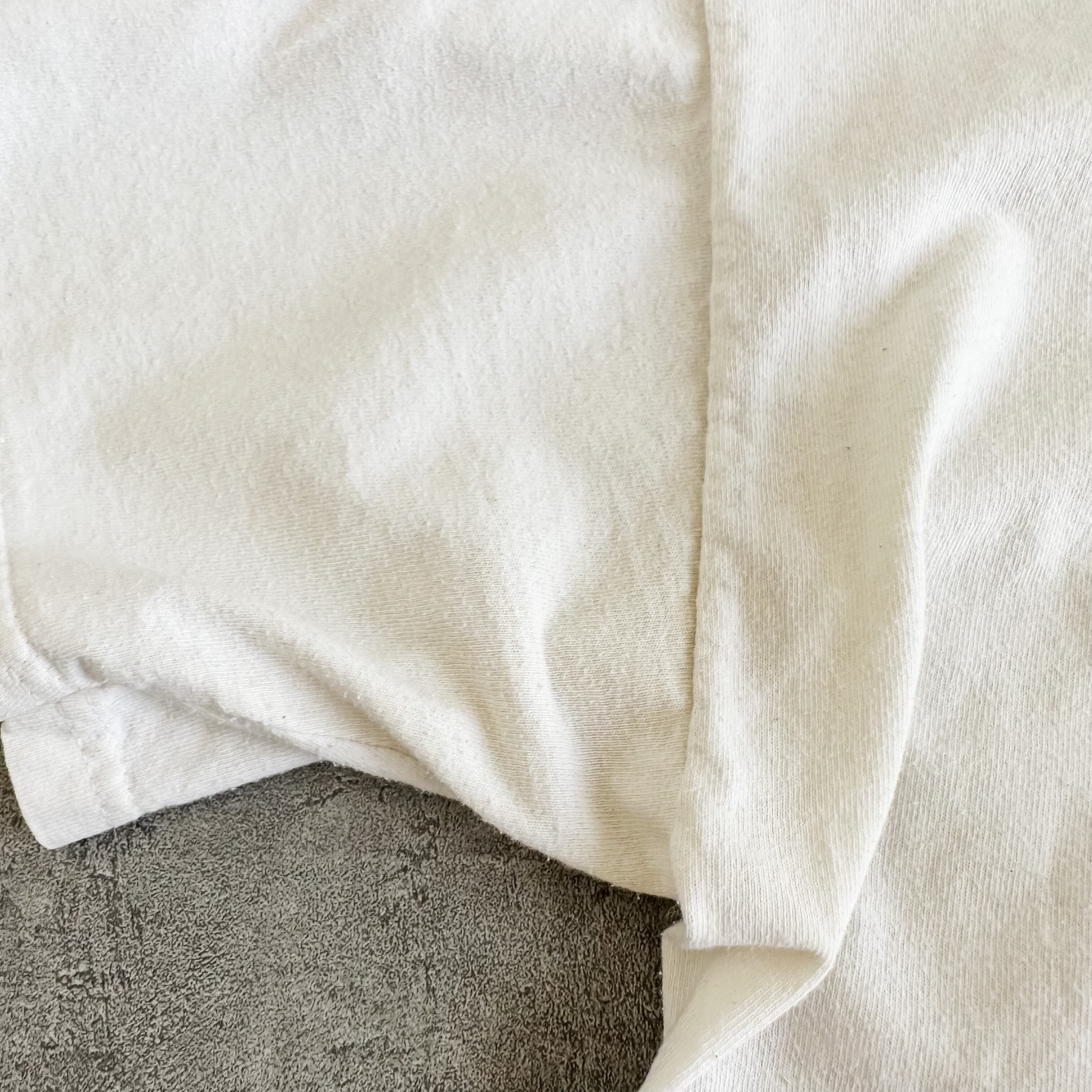 GILDANのコットンボディーに、袖裾ダブルステッチ。
