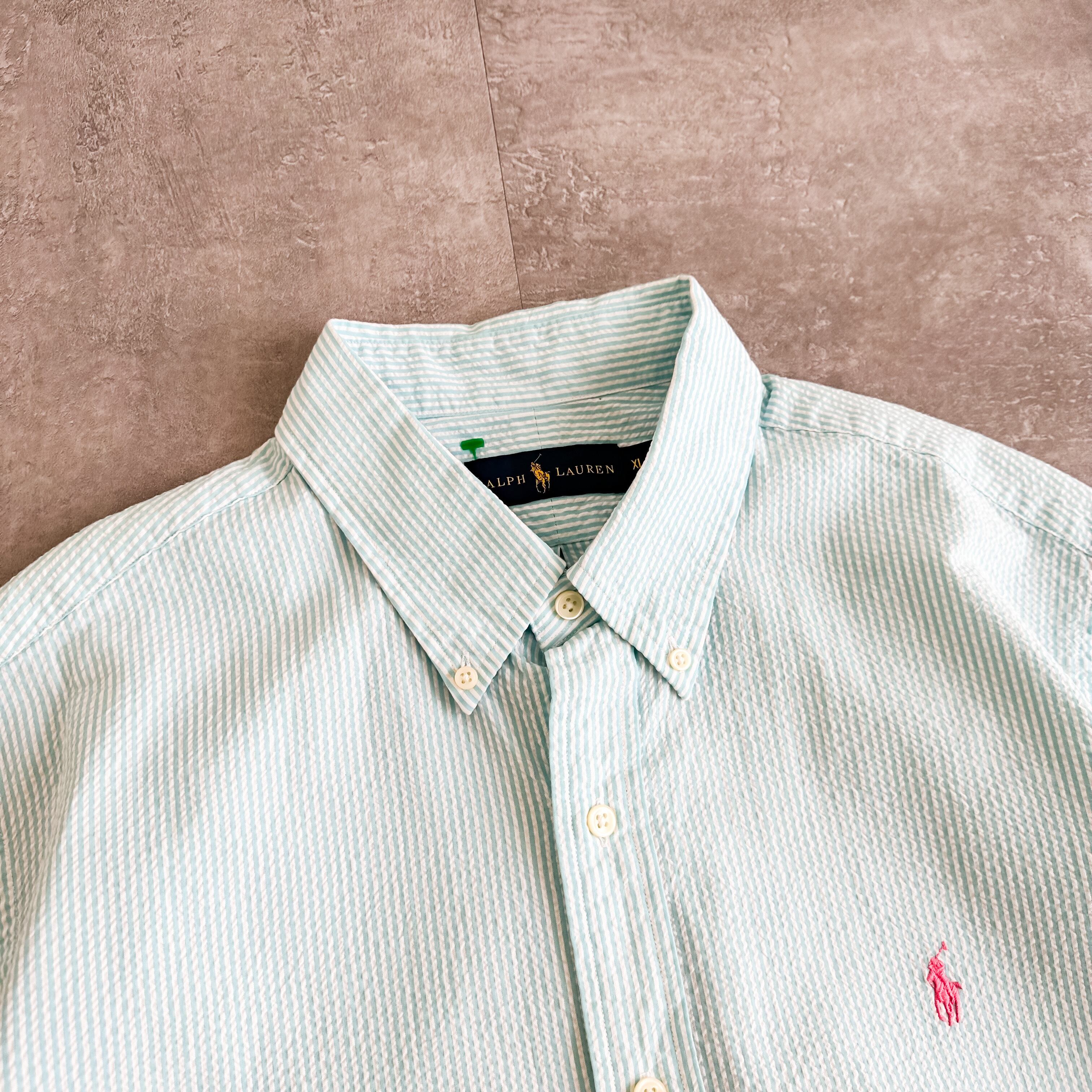 2000's "Ralph Lauren" B/D seersucker stripe pattern s/s shirt