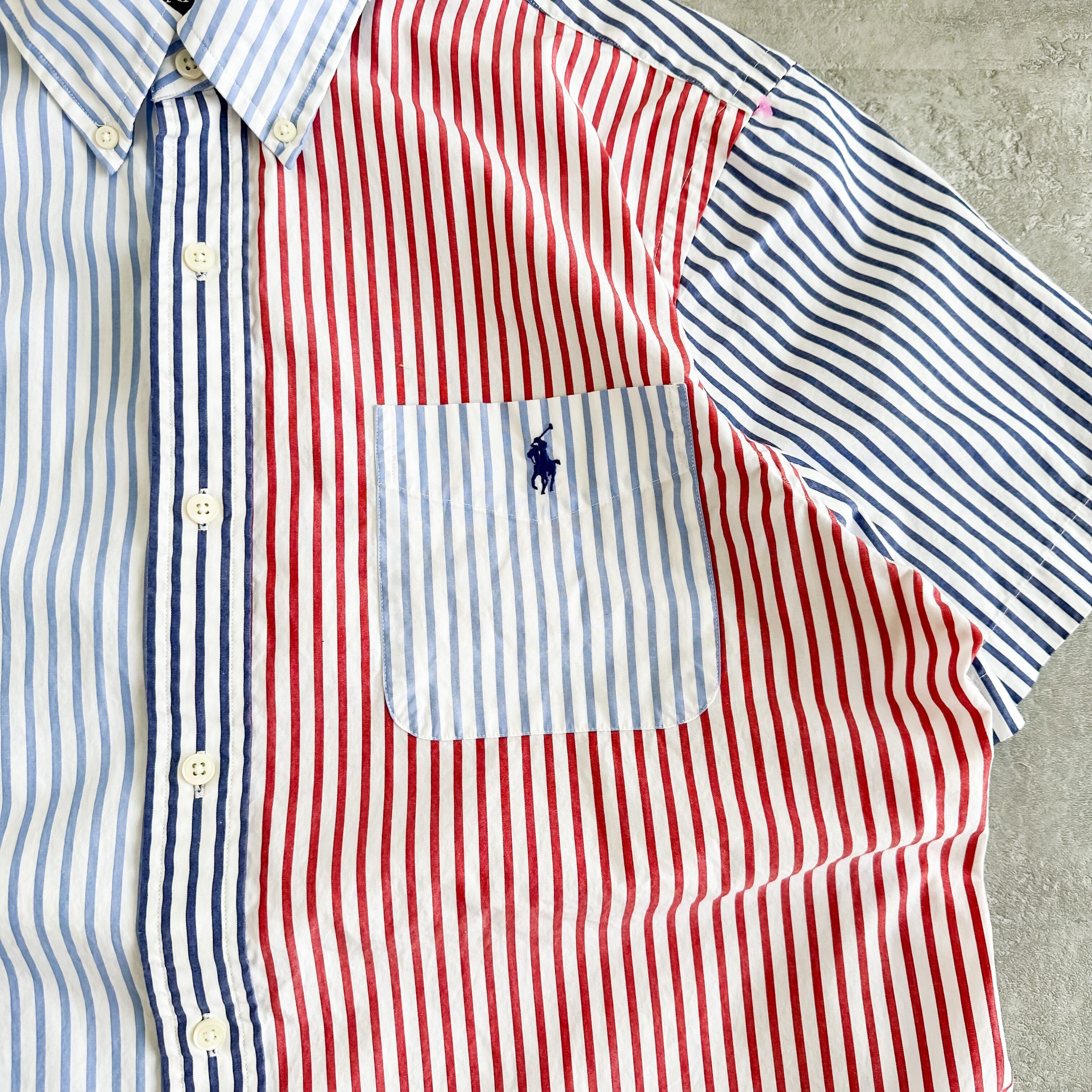 1990's~ "Ralph Lauren" B/D crazy stripe pattern s/s shirt