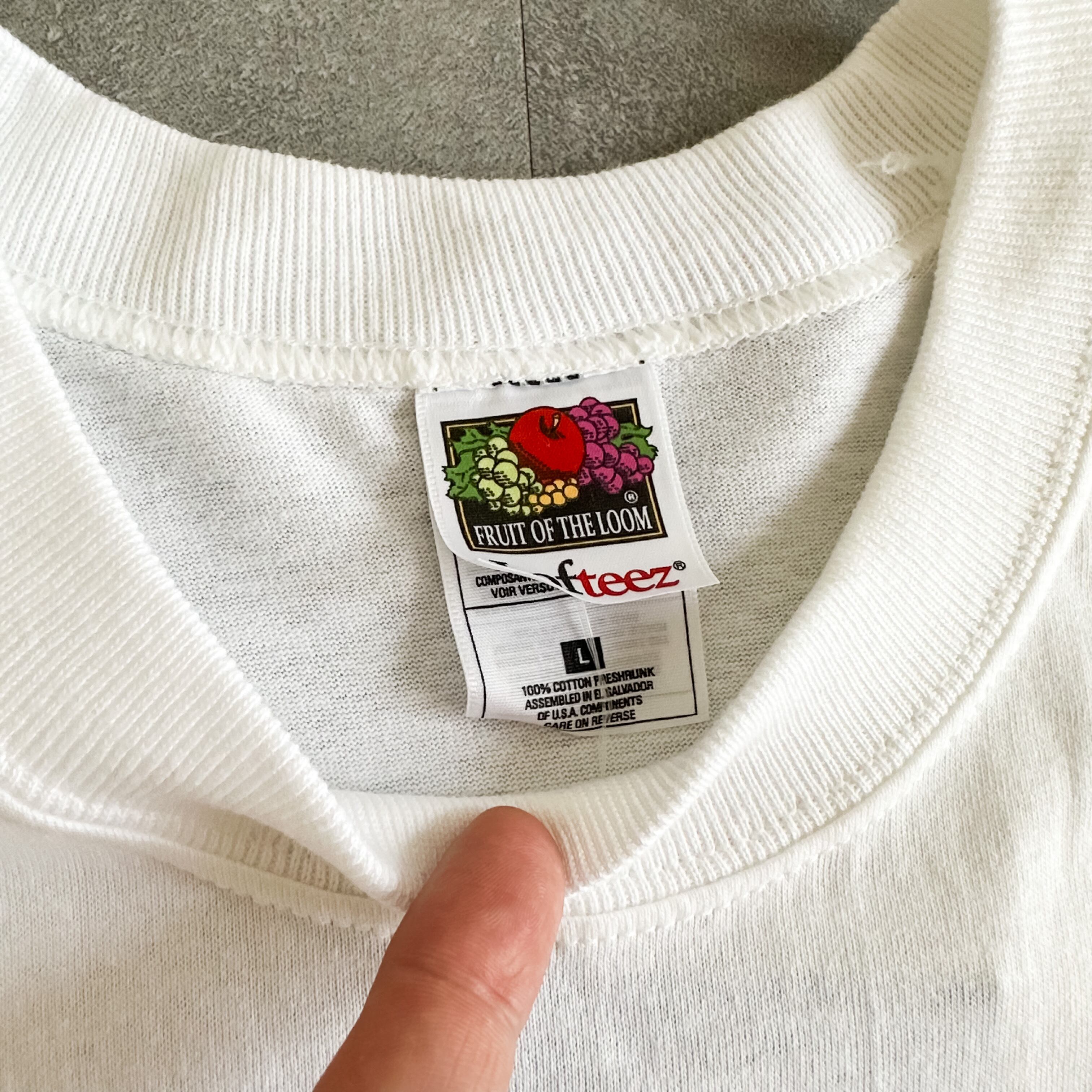 フルーツオブザルームのコットンボディーに、袖裾ダブルステッチ。