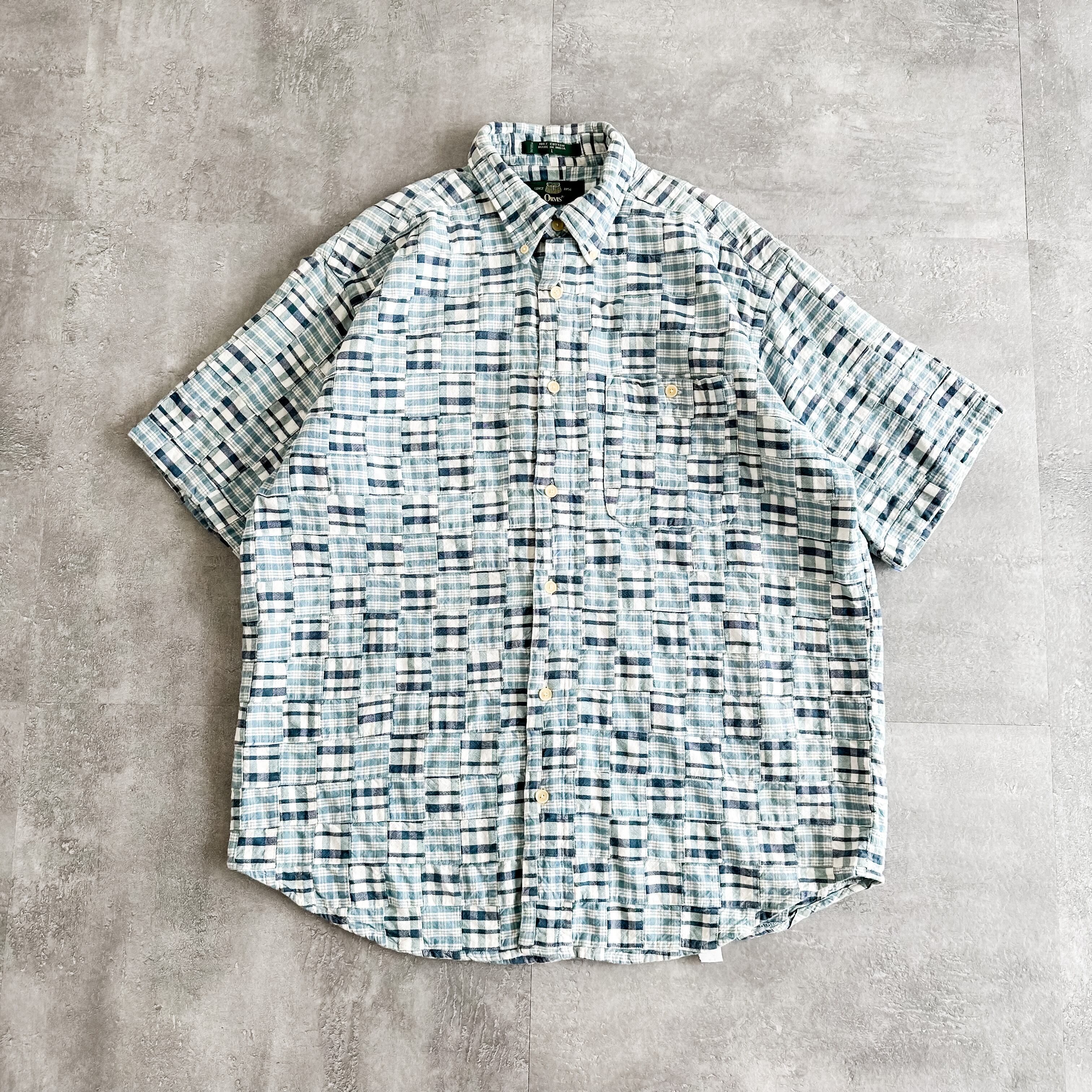 1990's "ORVIS" plaid pattern patchwork design cotton s/s shirt