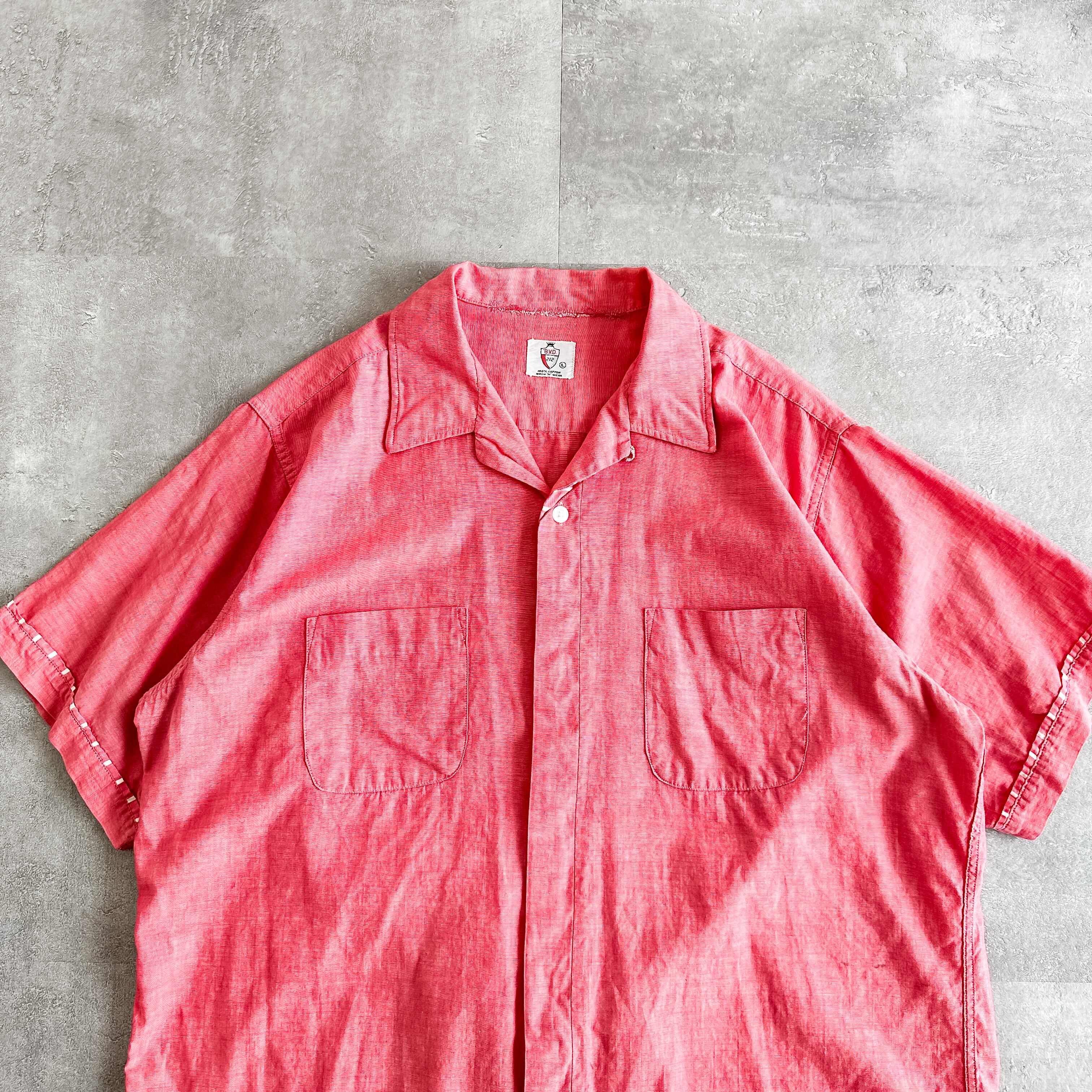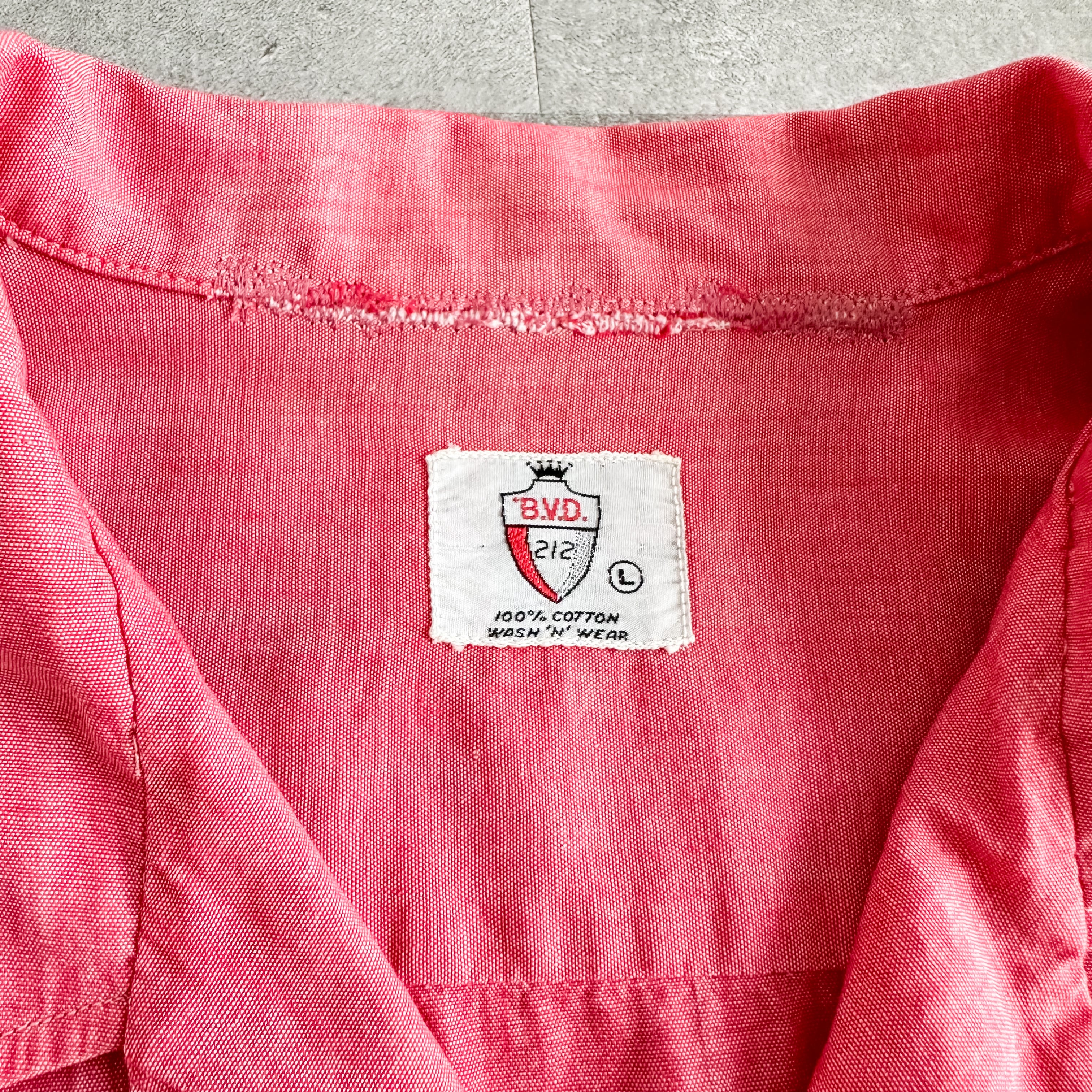Vintage ~1960's "B.V.D" red chambray roop collar s/s shirt
