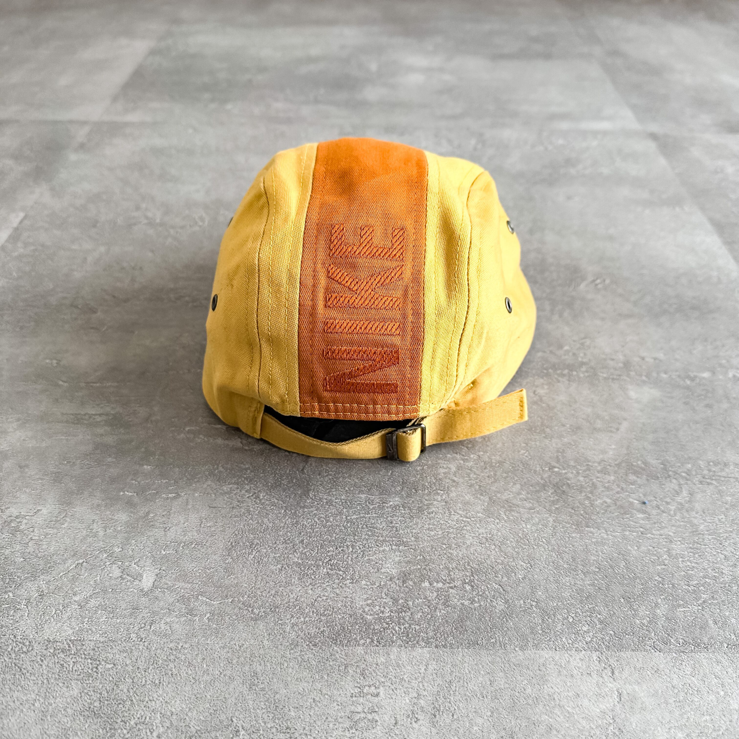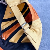 通常とは違うストライプ状に切り替わっている珍しい仕様の5パネルのデザインに、春夏らしいイエロー×オレンジのツートンカラーがグッドな逸品。