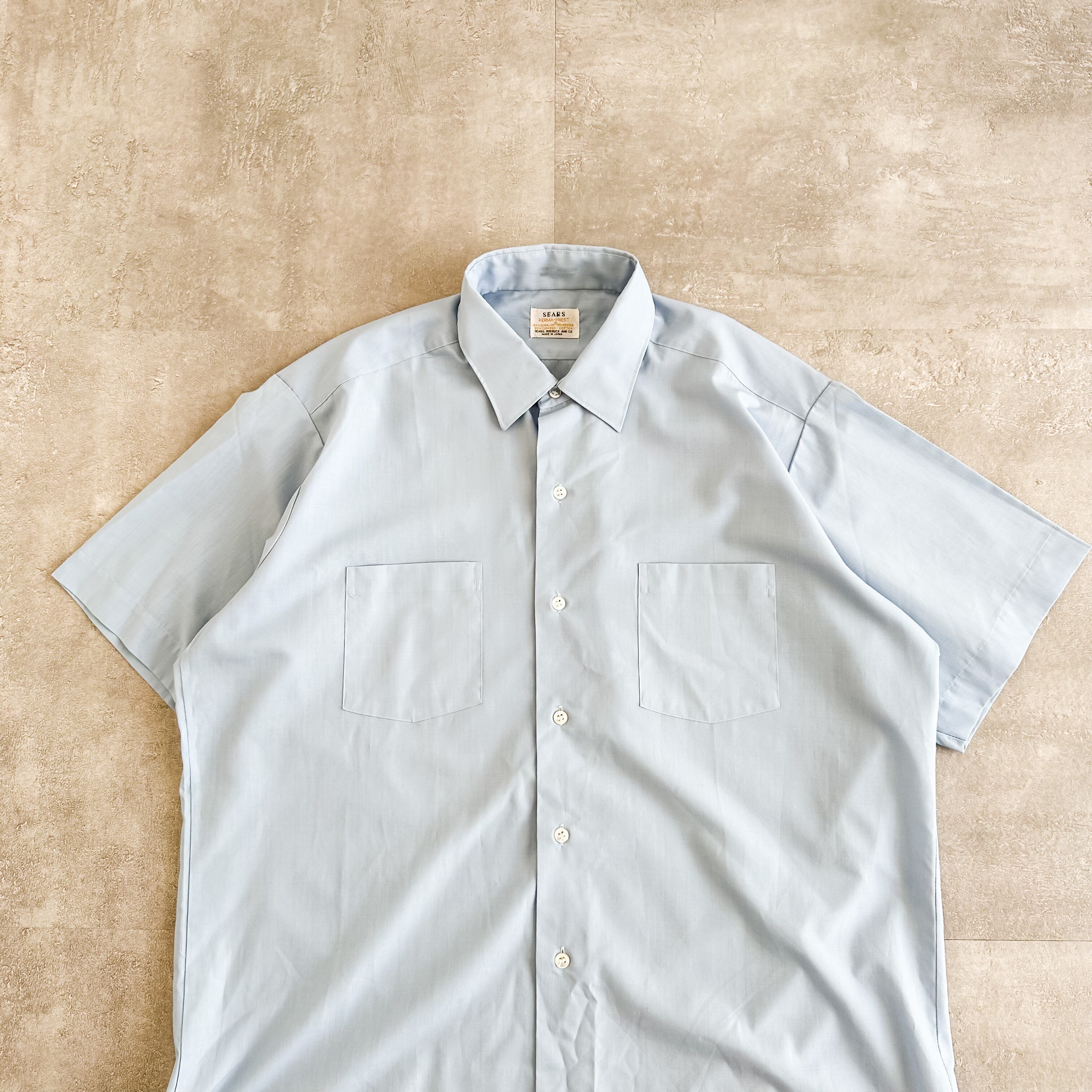 1960's~ "SEARS" PERMA-PREST light blue s/s shirt made in Japan