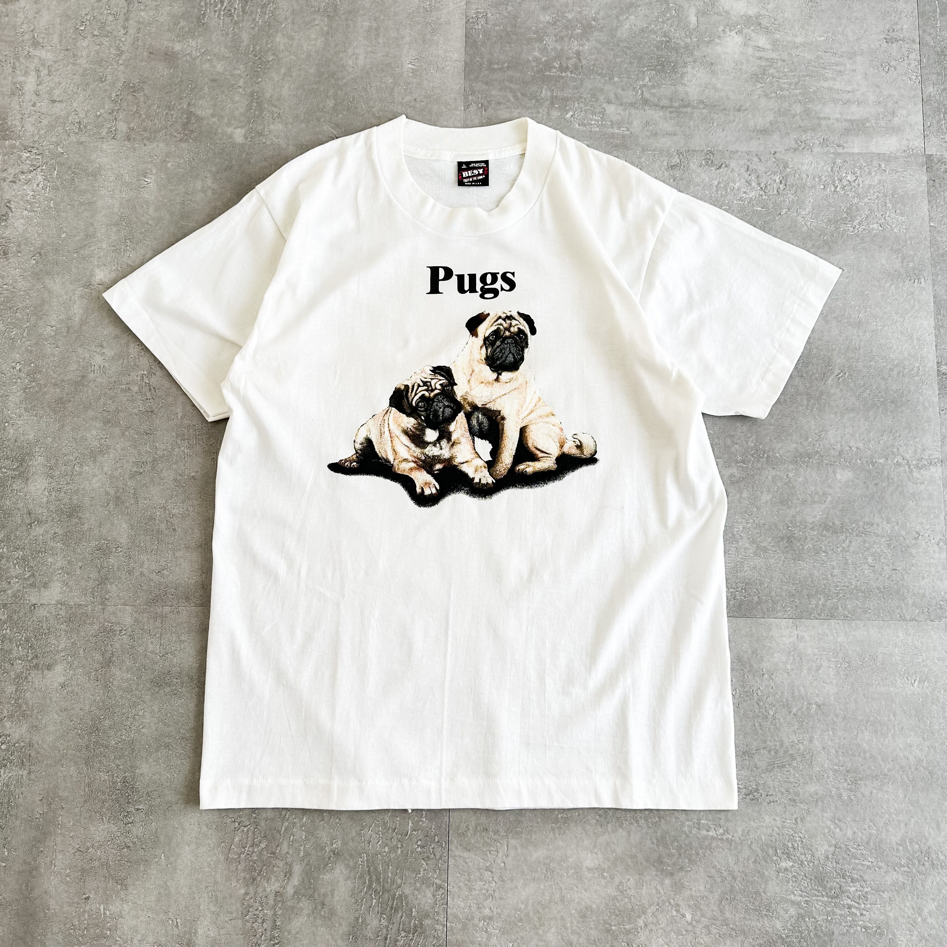 フロントには二匹のパグがプリントされた可愛らしい一枚です。