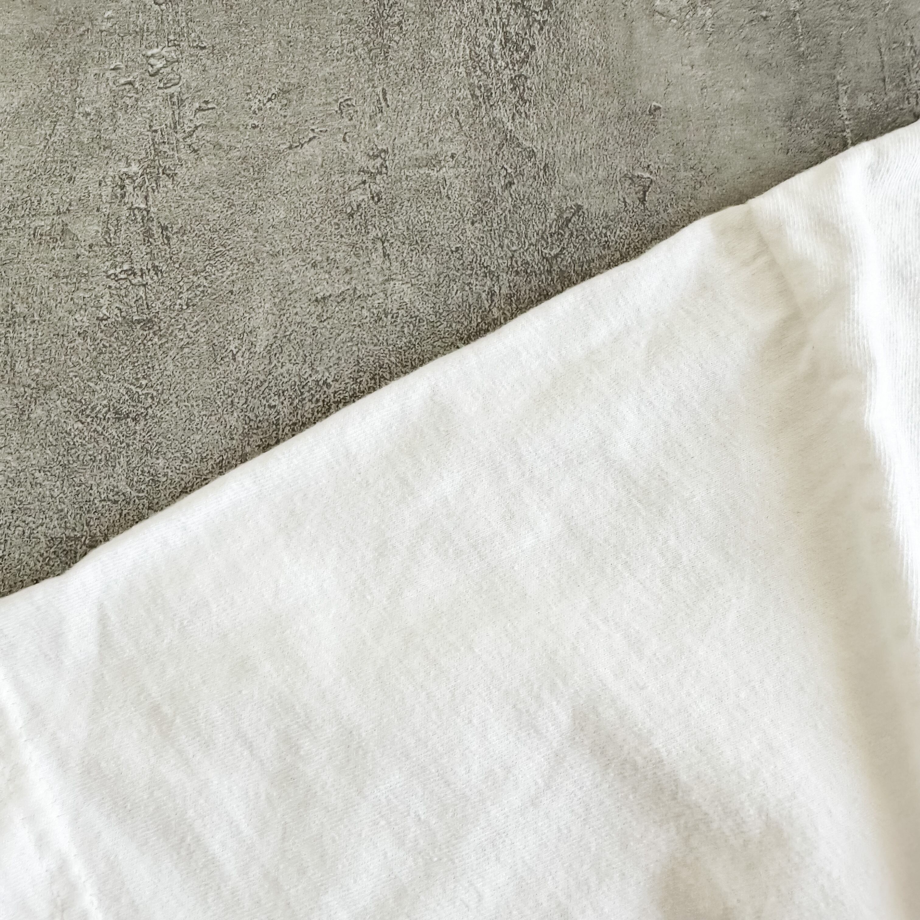 Hanesのオールコットンボディーで、袖裾ダブルステッチ。