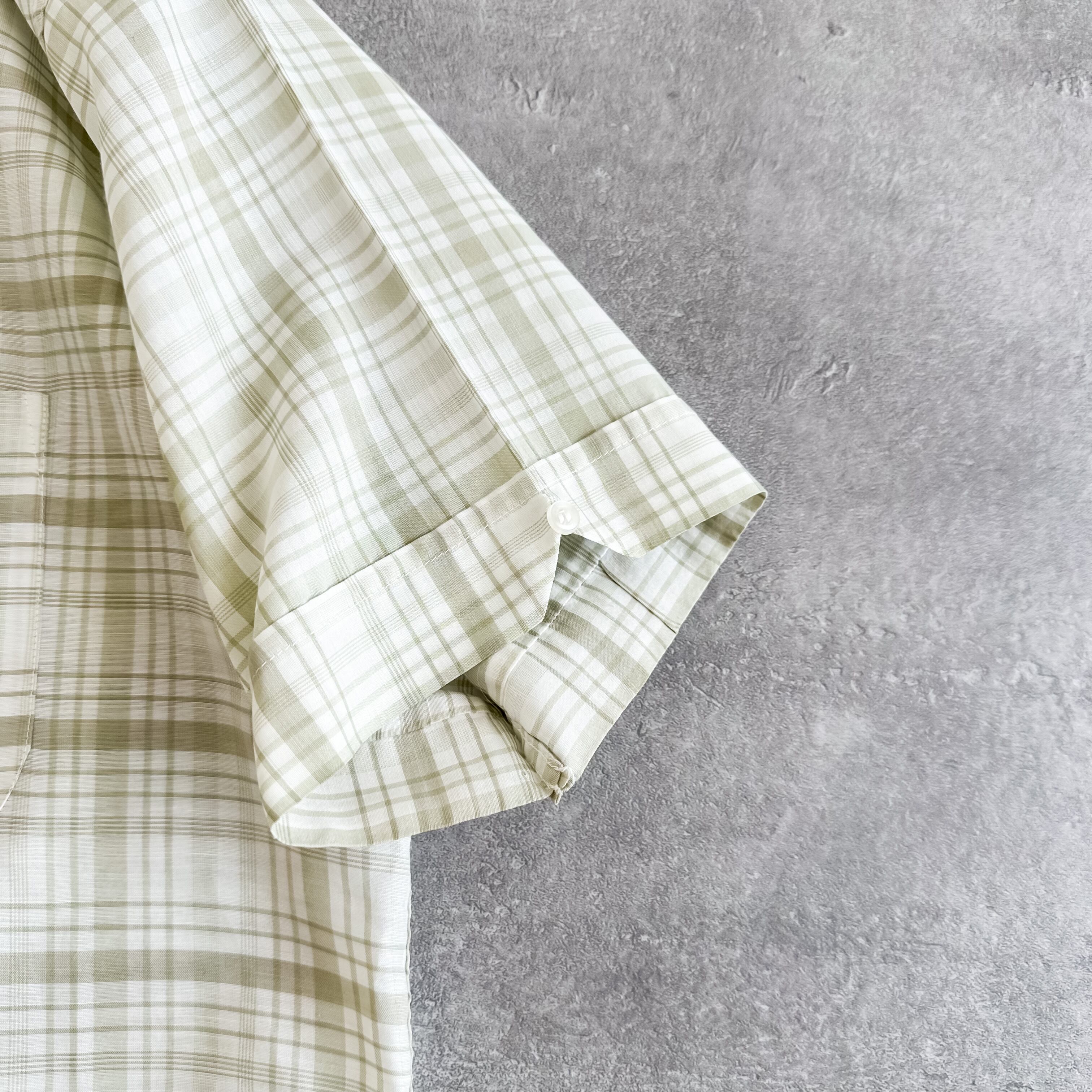 フロントはツーポケでボックスシルエット、ホワイトベースの爽やかな配色のチェック柄がグッドな一枚。