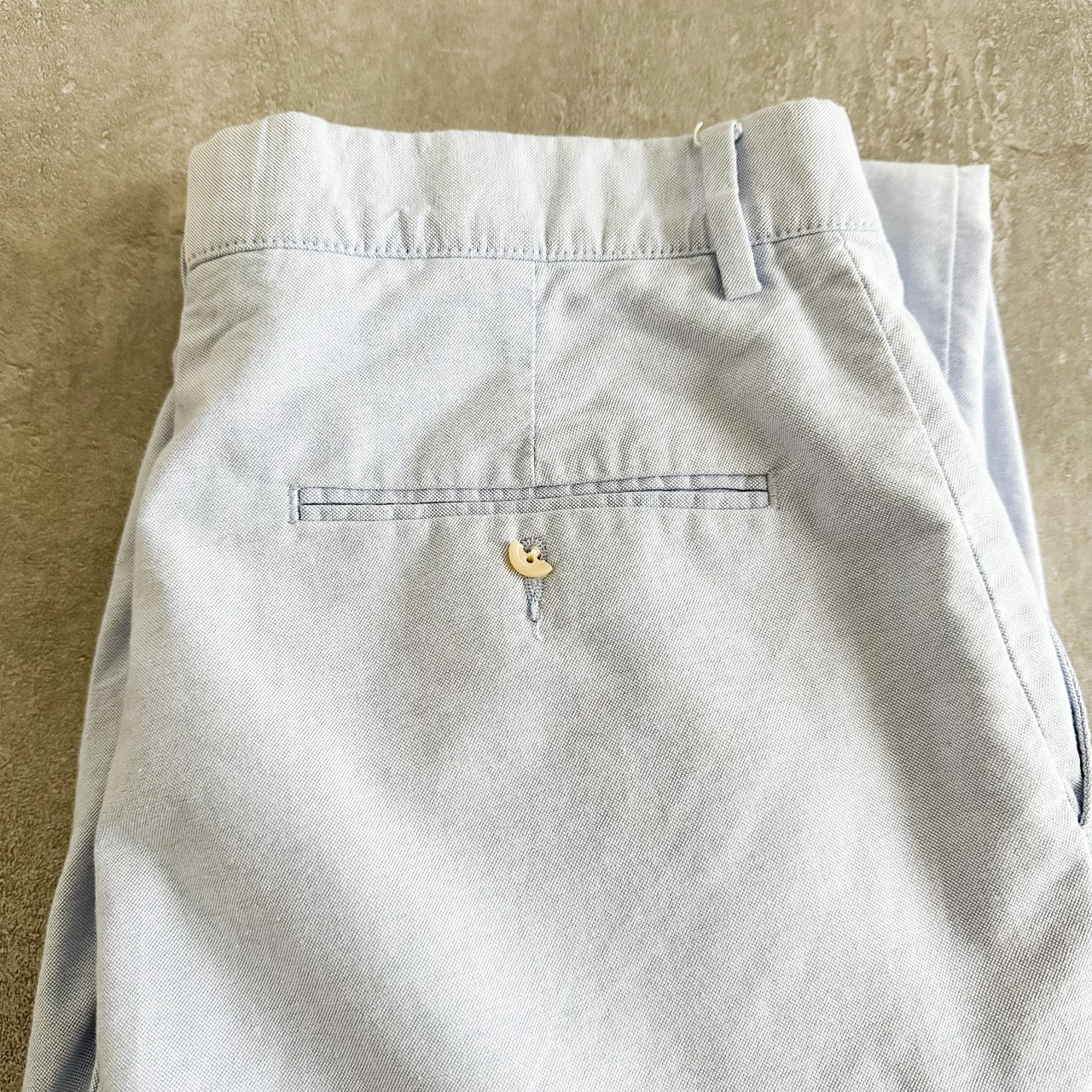 爽やかなライトブルーカラーに、パンツでは珍しいオールコットンのオックスフォード生地。