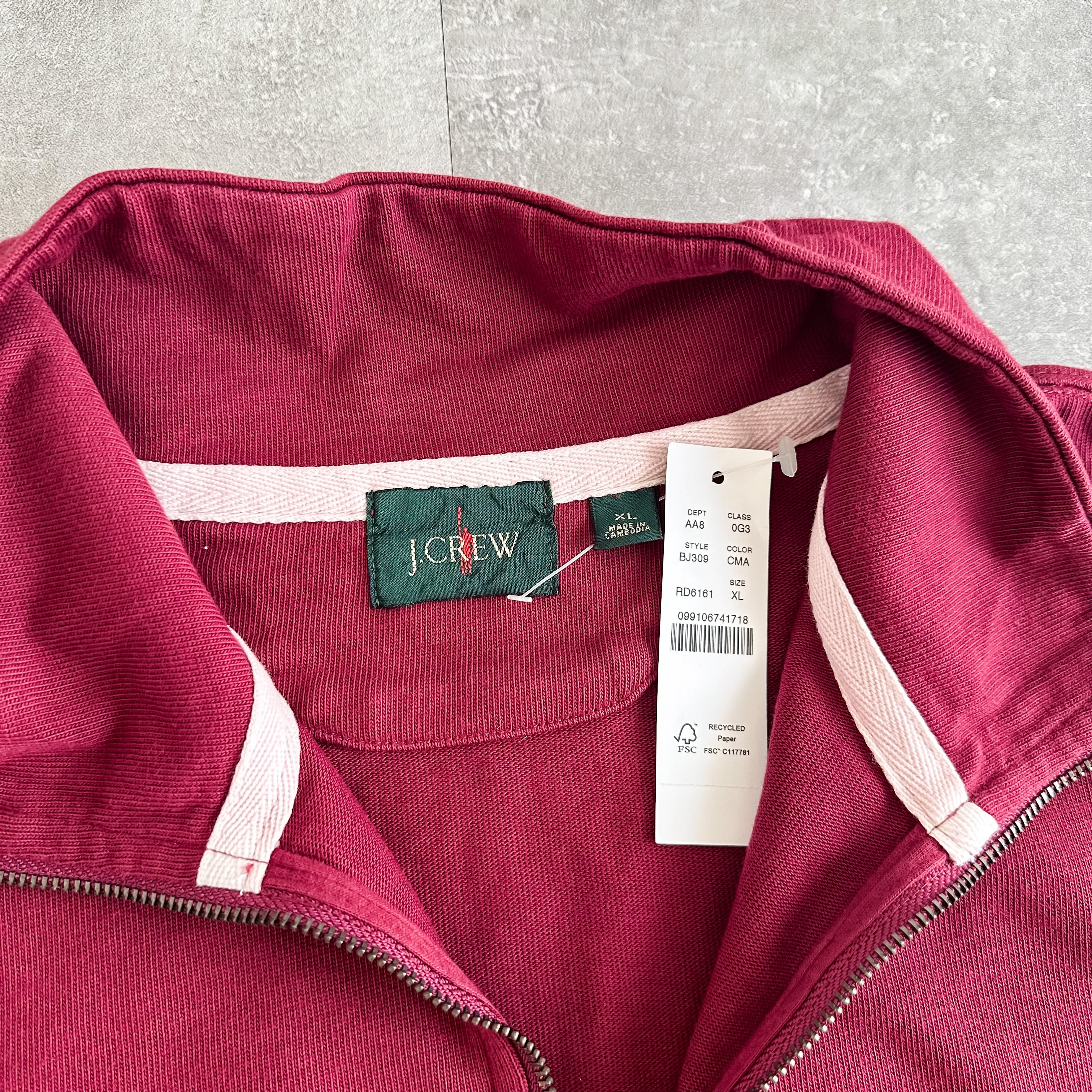 Dead stock! 2000's "J CREW" maroon halfzip cotton sweat with elbow patch