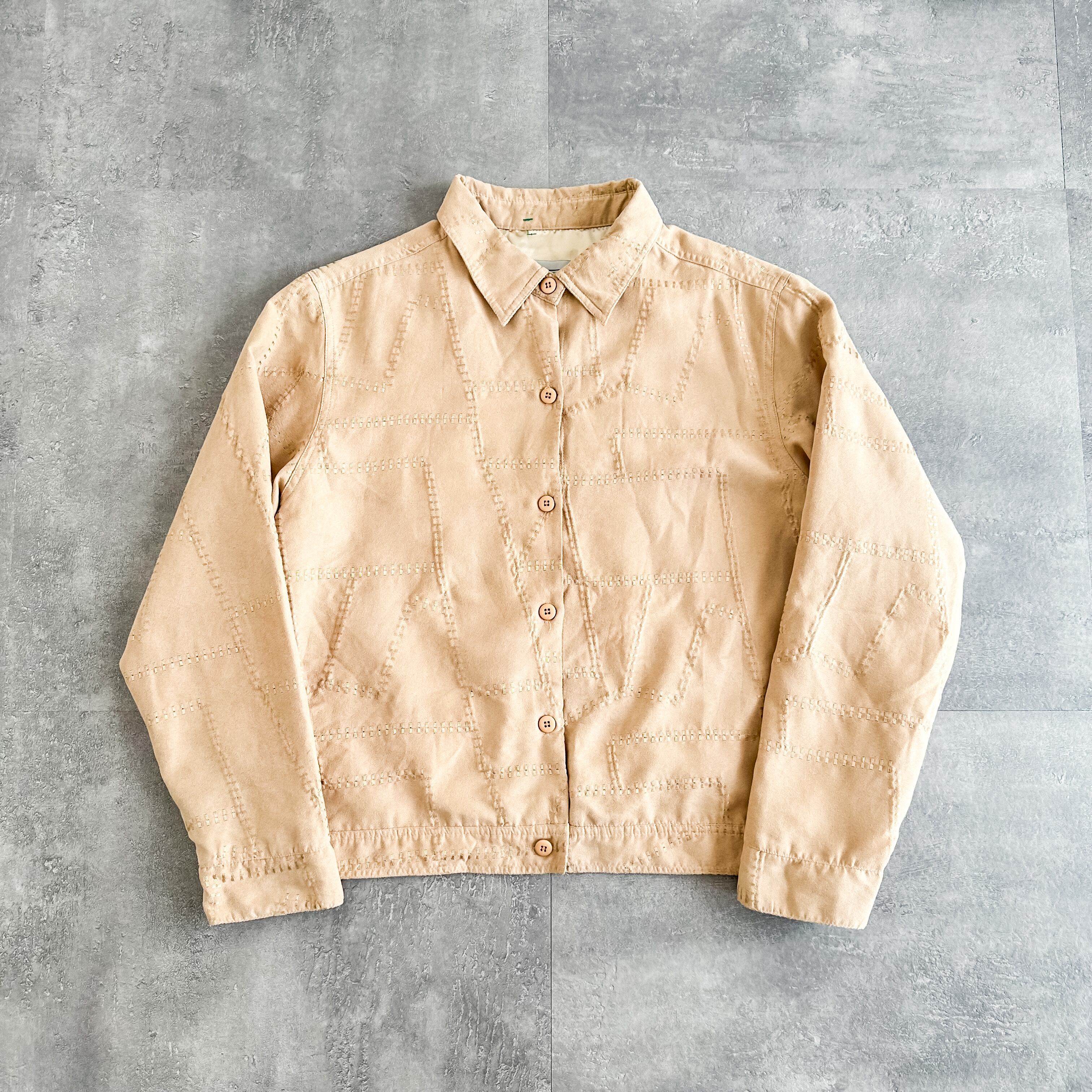 1990's~ beige embroidery design box silhouette faux suede shirt